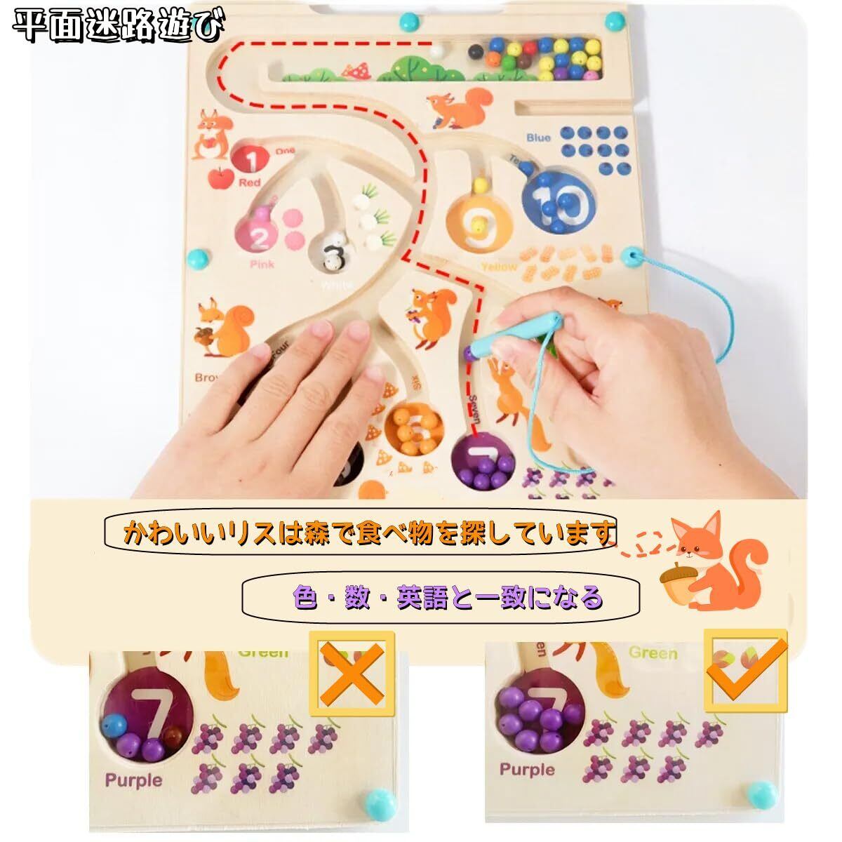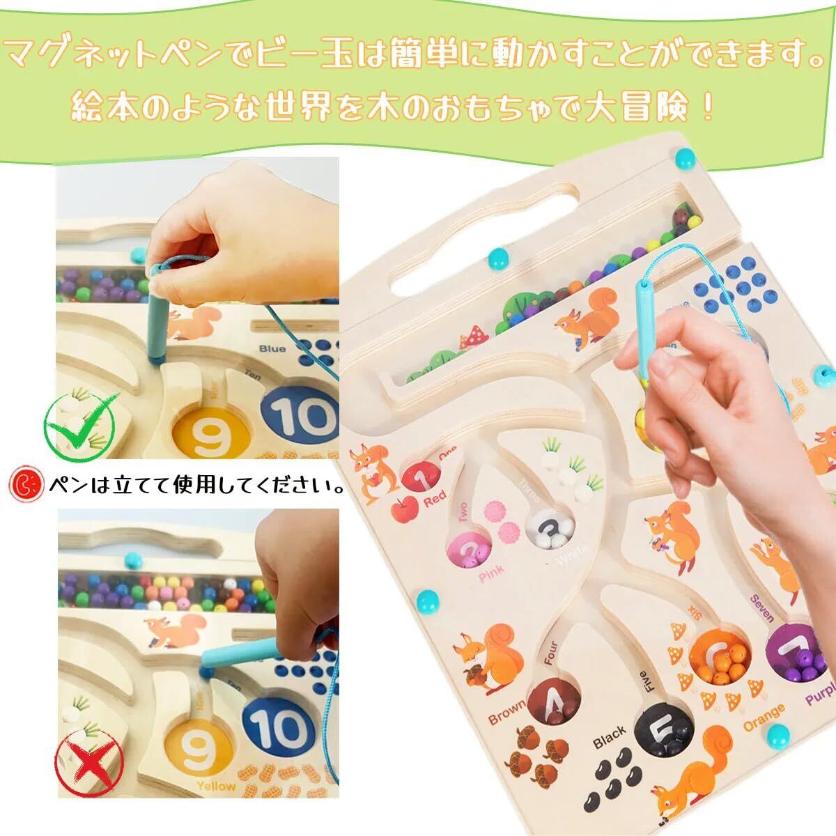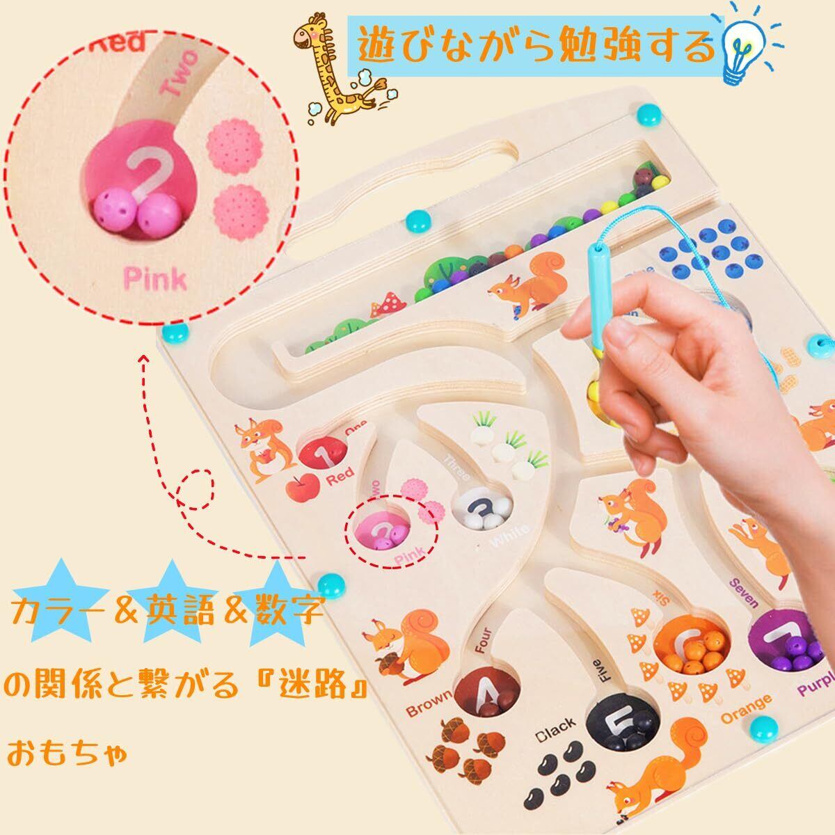 【プレゼントや学習教具に最適】迷路のルートに沿ってマグネットペンで玉を運んでいくことで、数の数え方や色の認識力が深まるだけでなく、遊びながらペンの持ち方や、手先の器用性、思考力、集中力も養うことができます。お誕生日やクリスマスなどのプレゼントにピッタリ!
