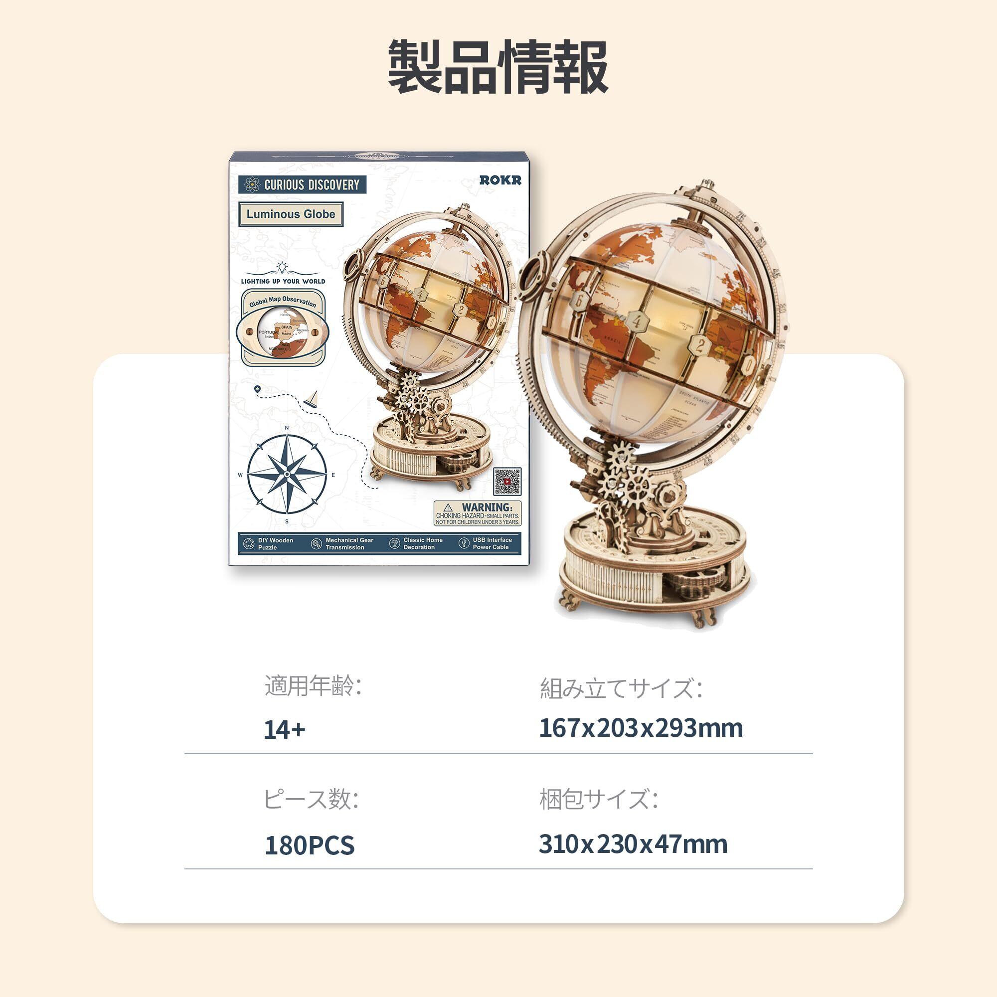 【数量限定】Robotime 立体パズル 3D木製パズル クラフト DIYモデルキット USB 発光グローブナイトライト 大人 木製の工芸品のキット 家の装飾 ユニークなギフト プレゼント ST003