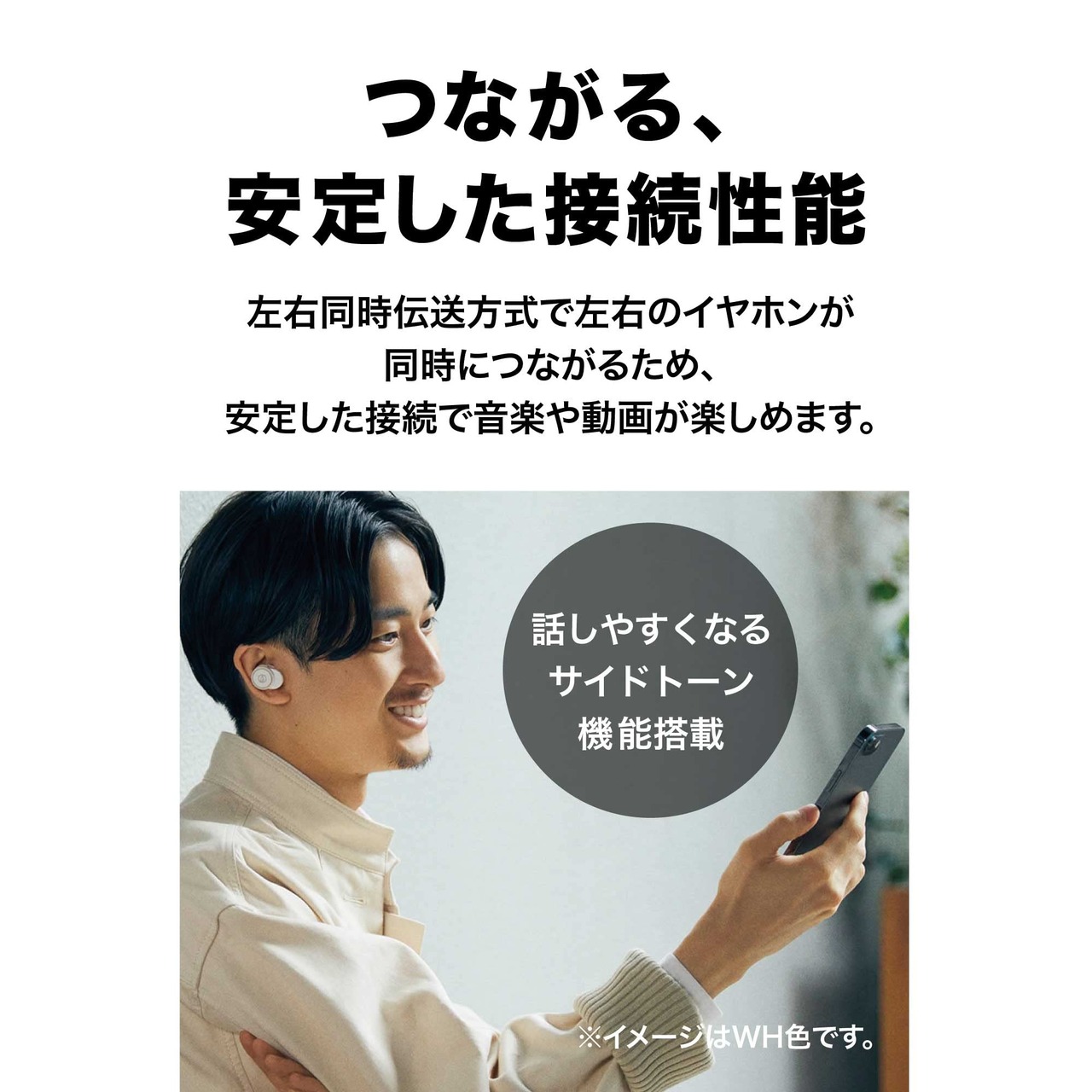 その他、便利な機能 ●ケースから取り出すだけで電源ON、すぐに使える ●Android端末との接続時に便利なFast Pair対応 ●片耳だけでも使用可能 ●音の途切れに強く、安定した接続の左右同時伝送方式 ●音と映像のずれを抑える低遅延モード(Low Latency Mode) ●連続約7時間再生、最大約21時間再生 ●複数台の機器登録が行えるマルチペアリング機能