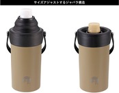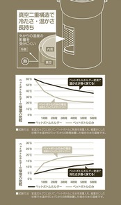 材質:本体内側/ステンレス鋼、本体外側/ステンレス鋼(アクリル樹脂塗装)、カバー/ポリプロピレン(耐熱温度100度)、ジャバラ部・持ち手/熱可塑性エラストマー、留め具/ステンレス鋼、内底部滑り止め/シリコーンゴム