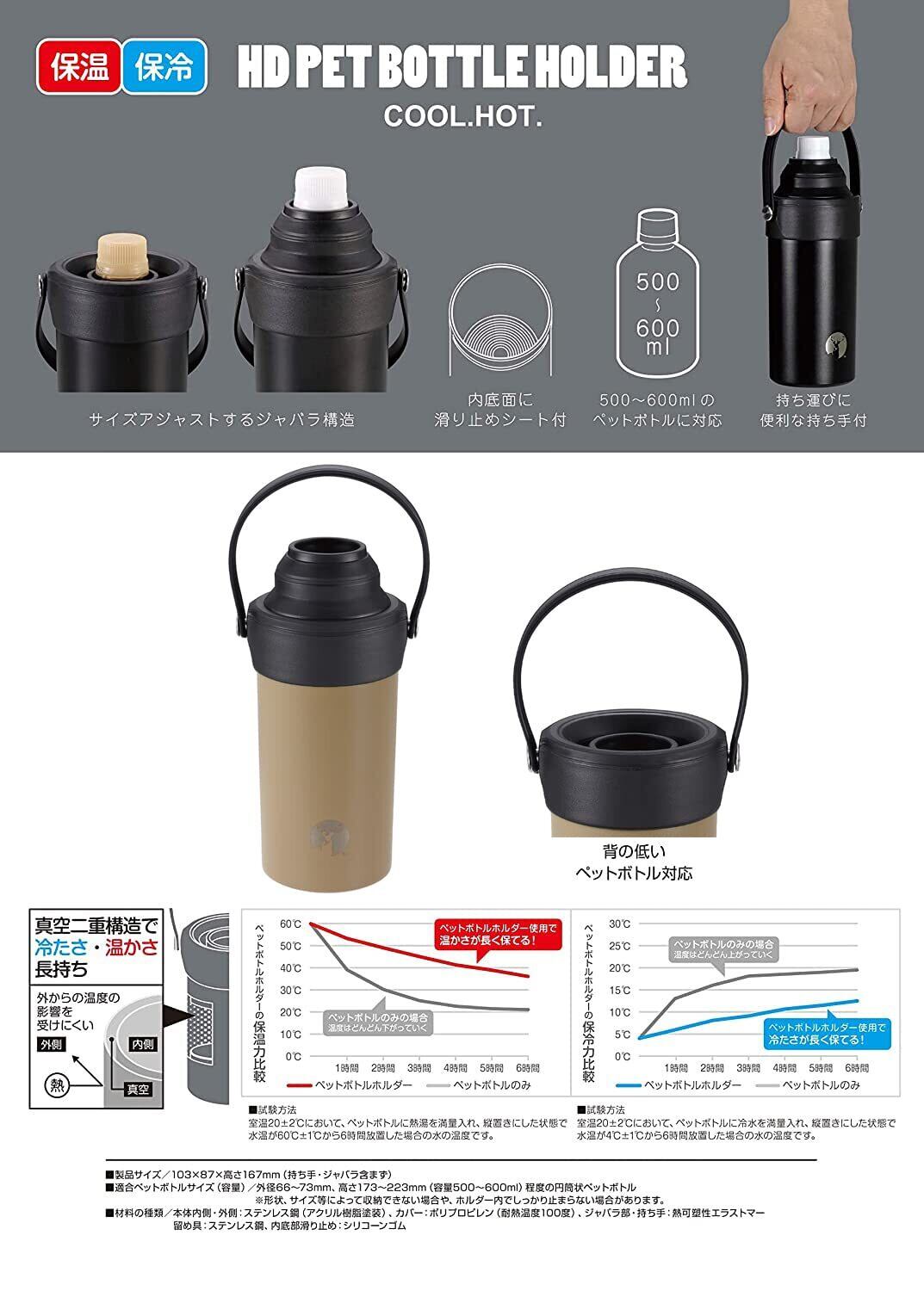 【新着商品】キャプテンスタッグ(CAPTAIN STAG) ペットボトルホルダー ペットボトルクーラー HD ステンレスペットボトルホルダー 真空断熱 保温 保冷 500ml 600ml 兼用 持ち手付 UE-3541/UE-3542/UE-3543/UY-7063
