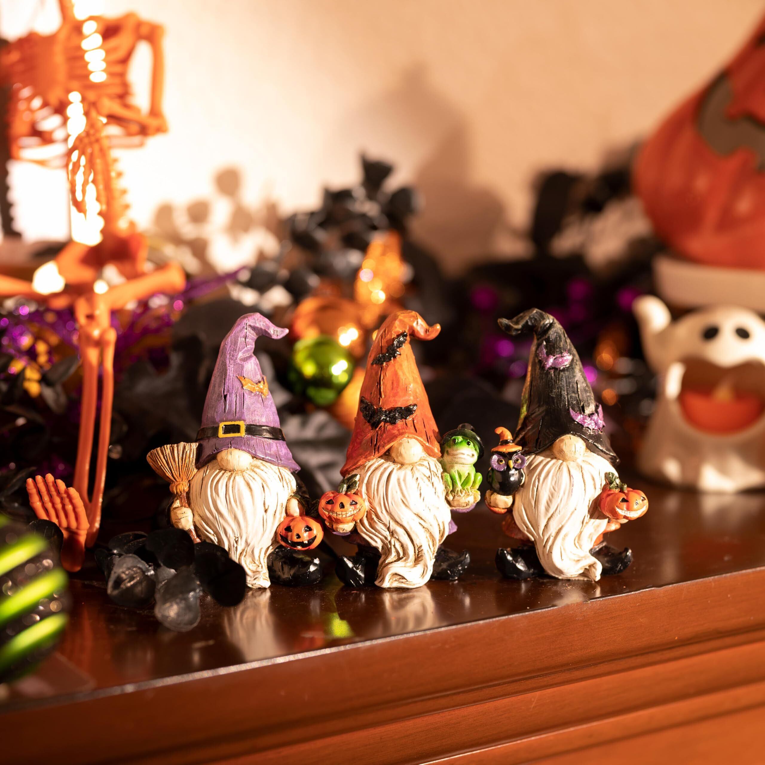 Valery Madelyn ハロウィン飾り ハロウィン置物 大地の妖精ノーム 3個セット 可愛い 置物 オブジェ オーナメント 玄関 卓上 置物 装飾 小物 飾り ホラー パーティー デコレーション グッズ 9cm
