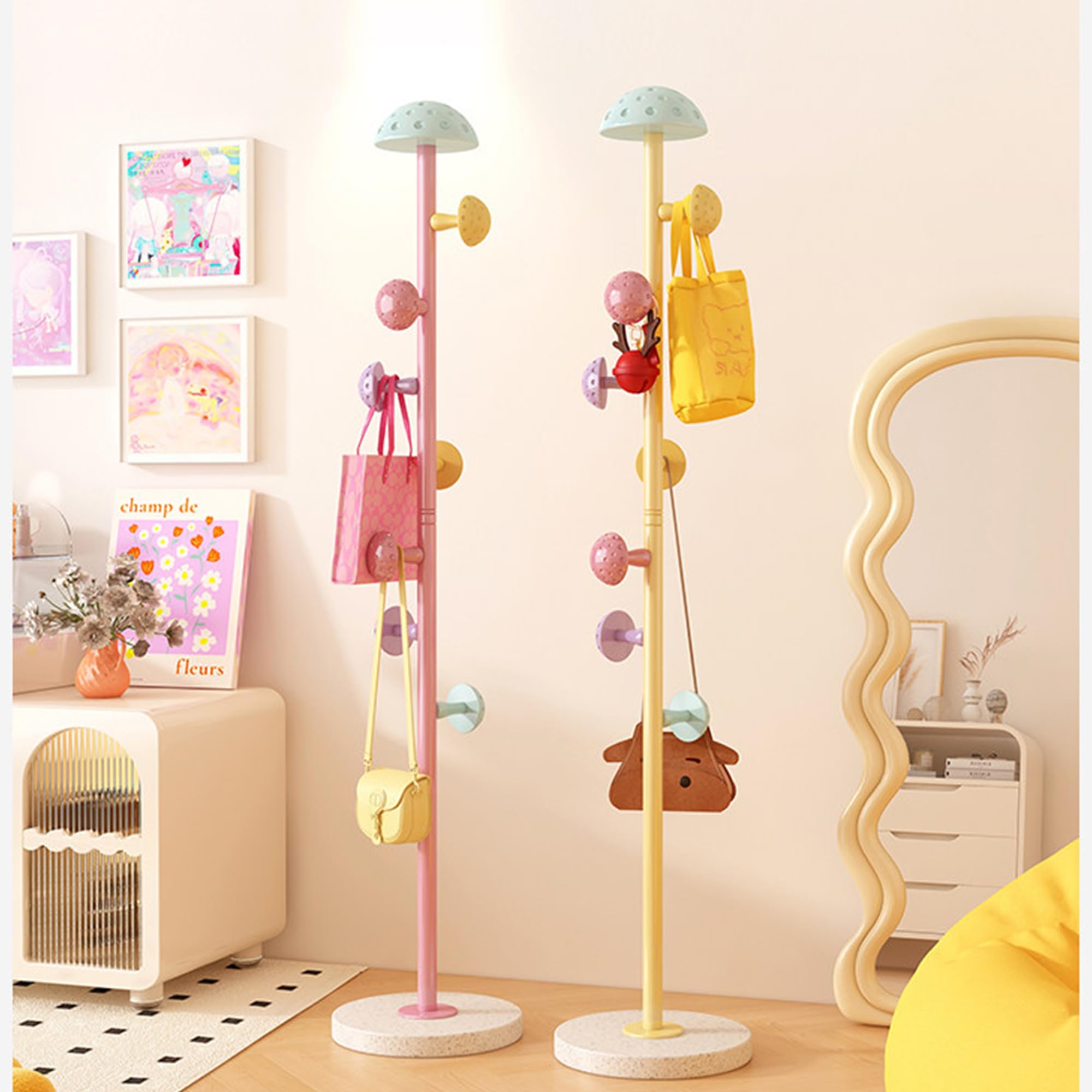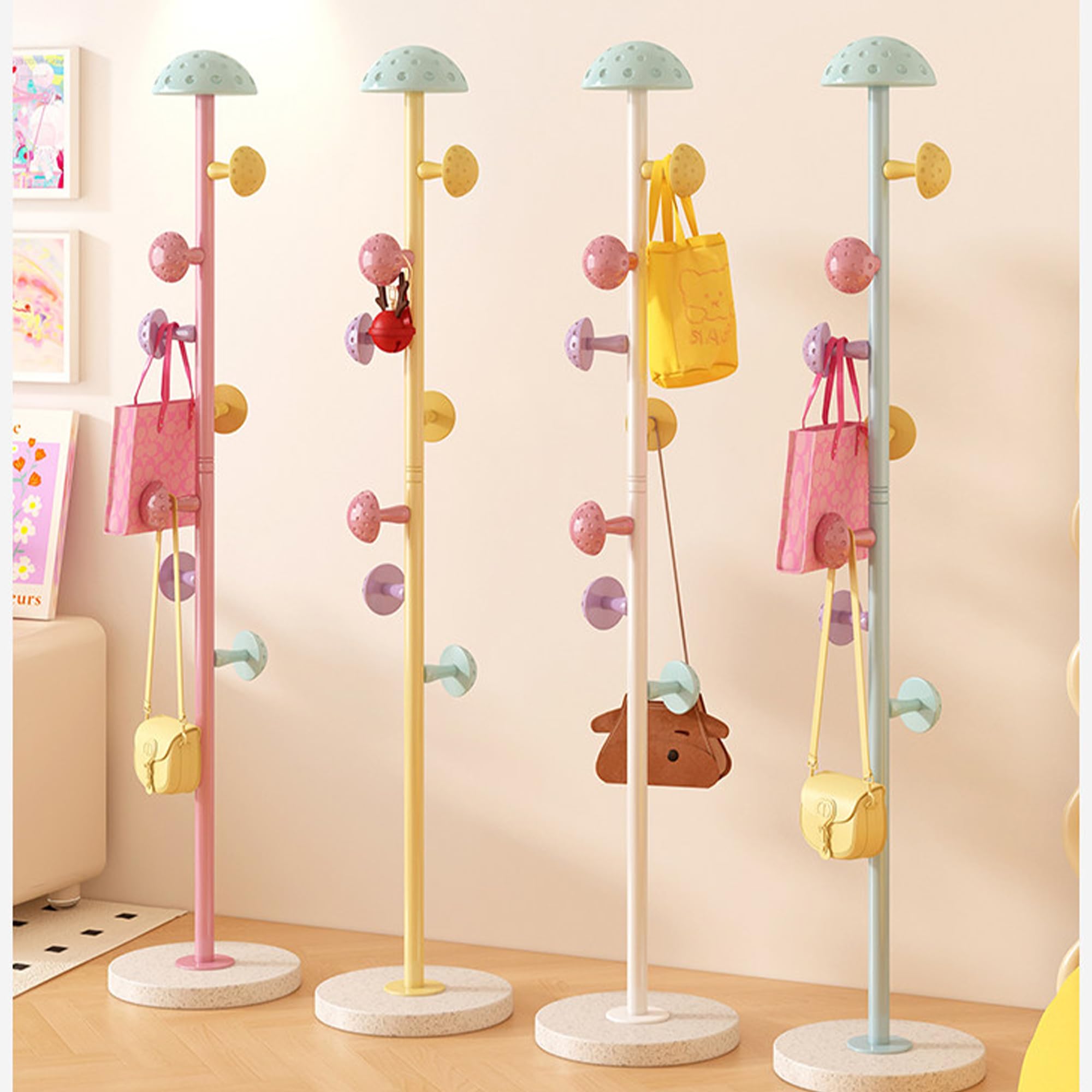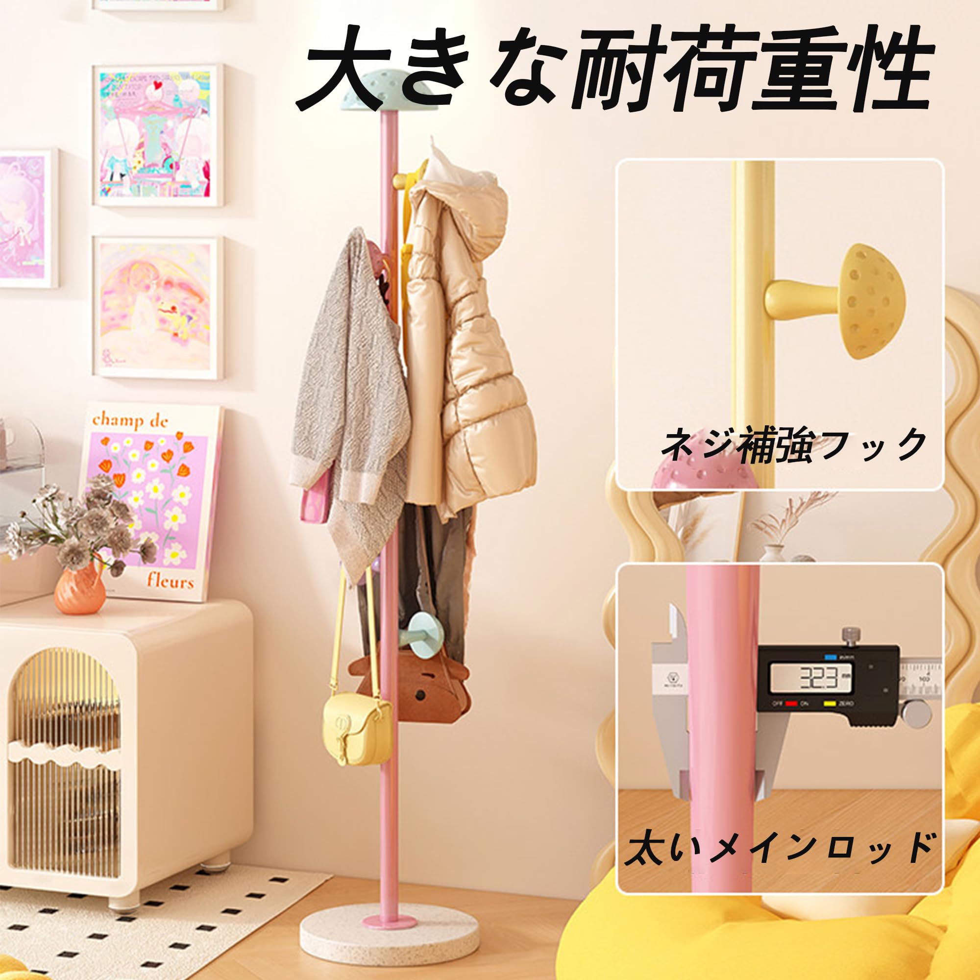ポールハンガーランドセルスタンド 金属製 倒れにくい カビが生えない 167cmの大きなベース 防湿 取り付け簡単 取り外し可能 高さ調節可能 コートハンガー スリム ファッション 北欧スタイル (粉)