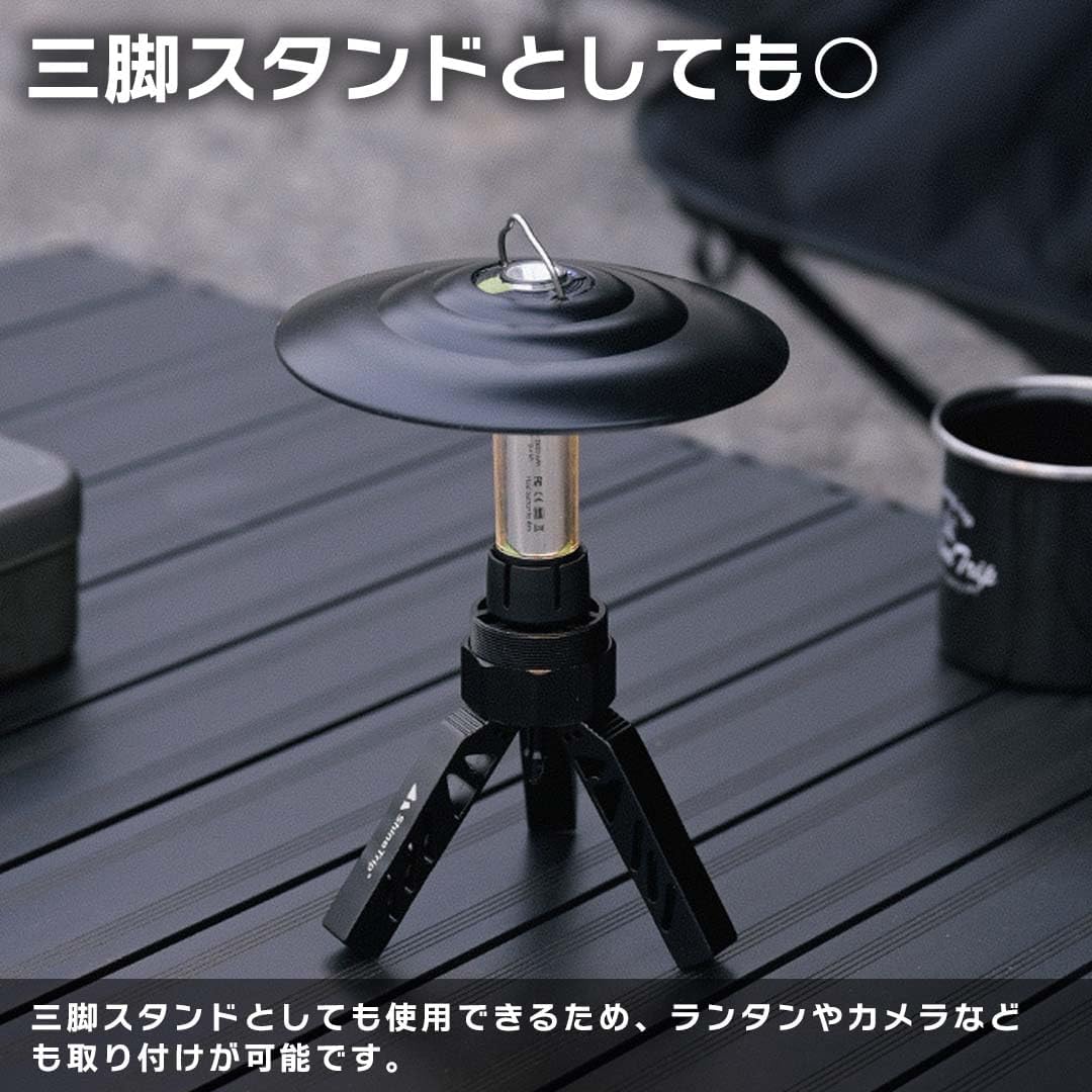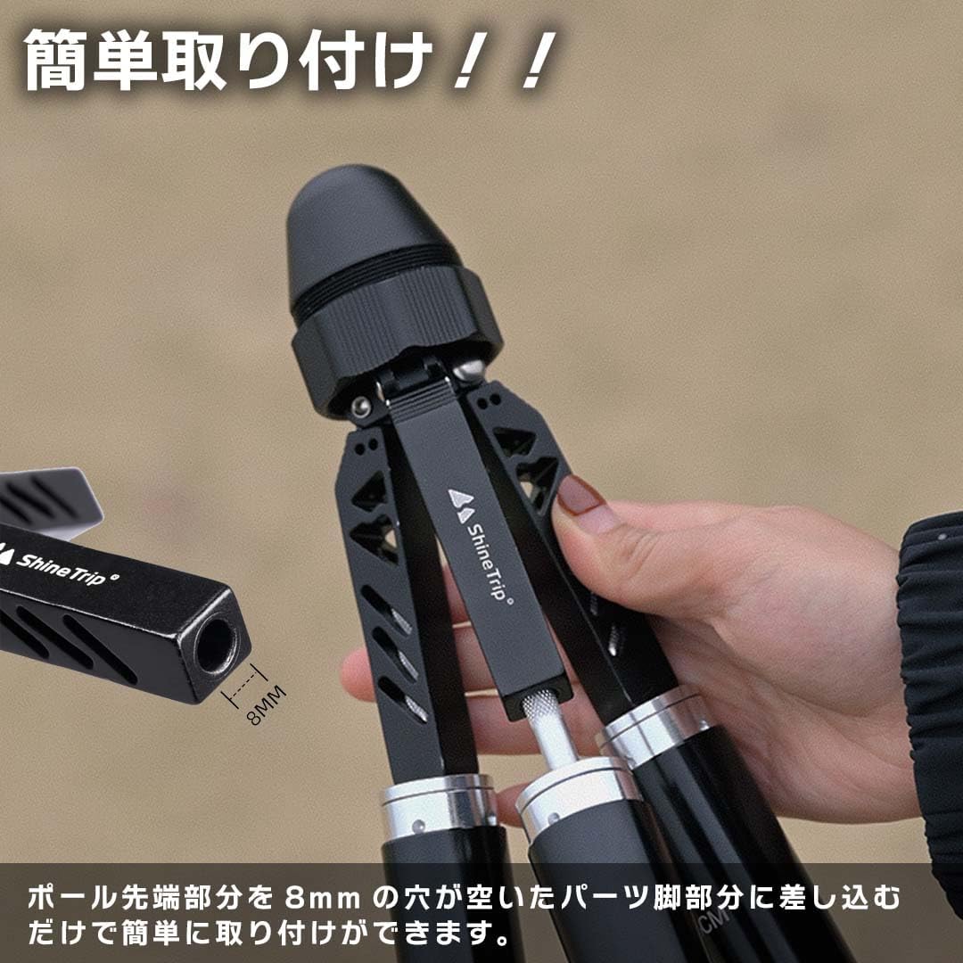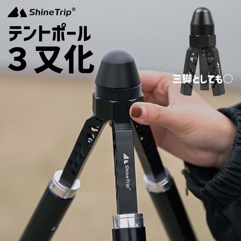 【取り付け簡単】初めての方でもスムーズに設営可能!三脚の下穴に挿し込むだけでテント内部からしっかりと支えられます。ピラミッドテントやシングルポールテントに最適。上部には1/4ネジを備え、キャンプライトやネジ穴付きデジタル機器にも対応。