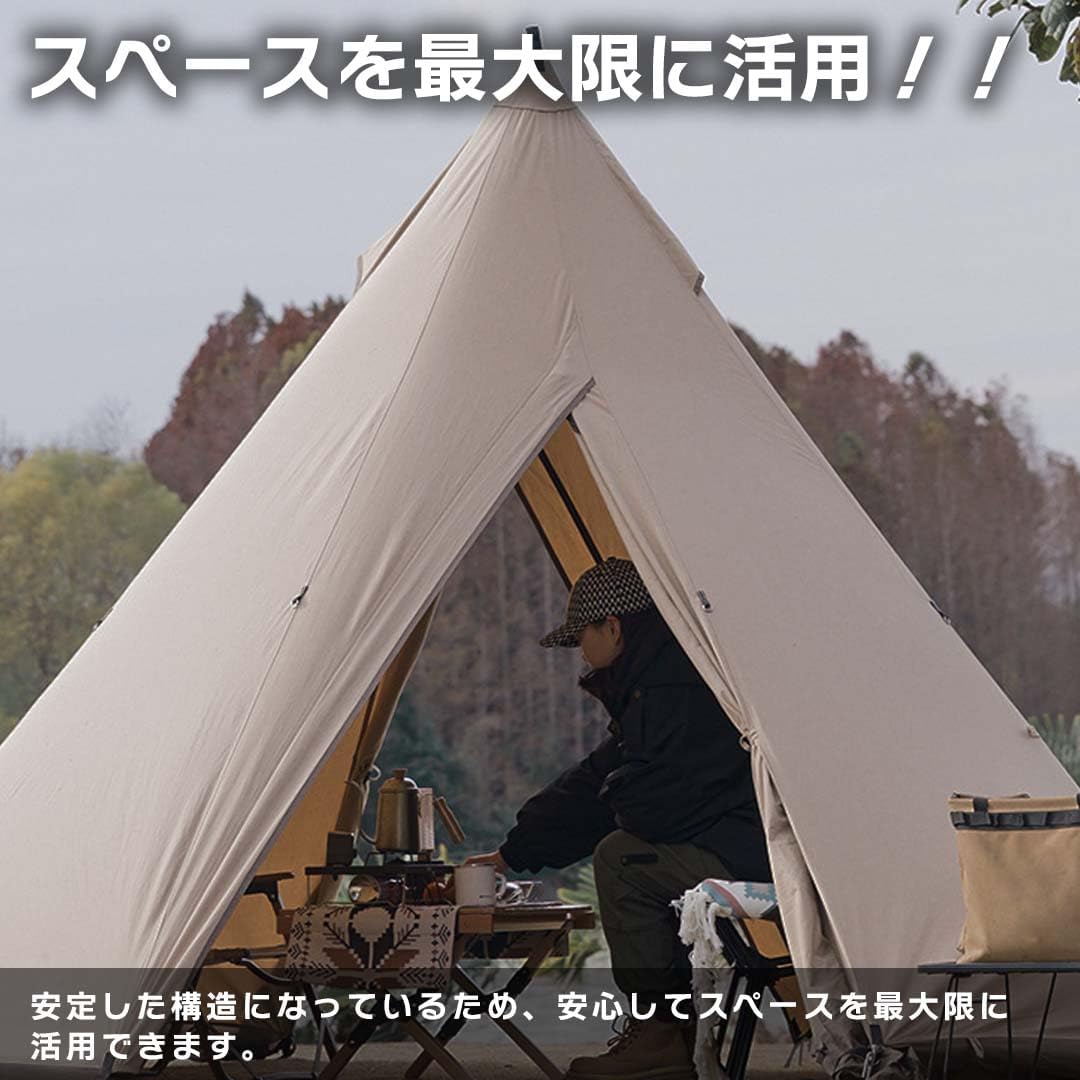 【角度調整可能】広げる角度やポールの長さを調整することで、多様なワンポールテントに対応可能。シングルポールテントを拡張し、快適な空間を作り出せます。