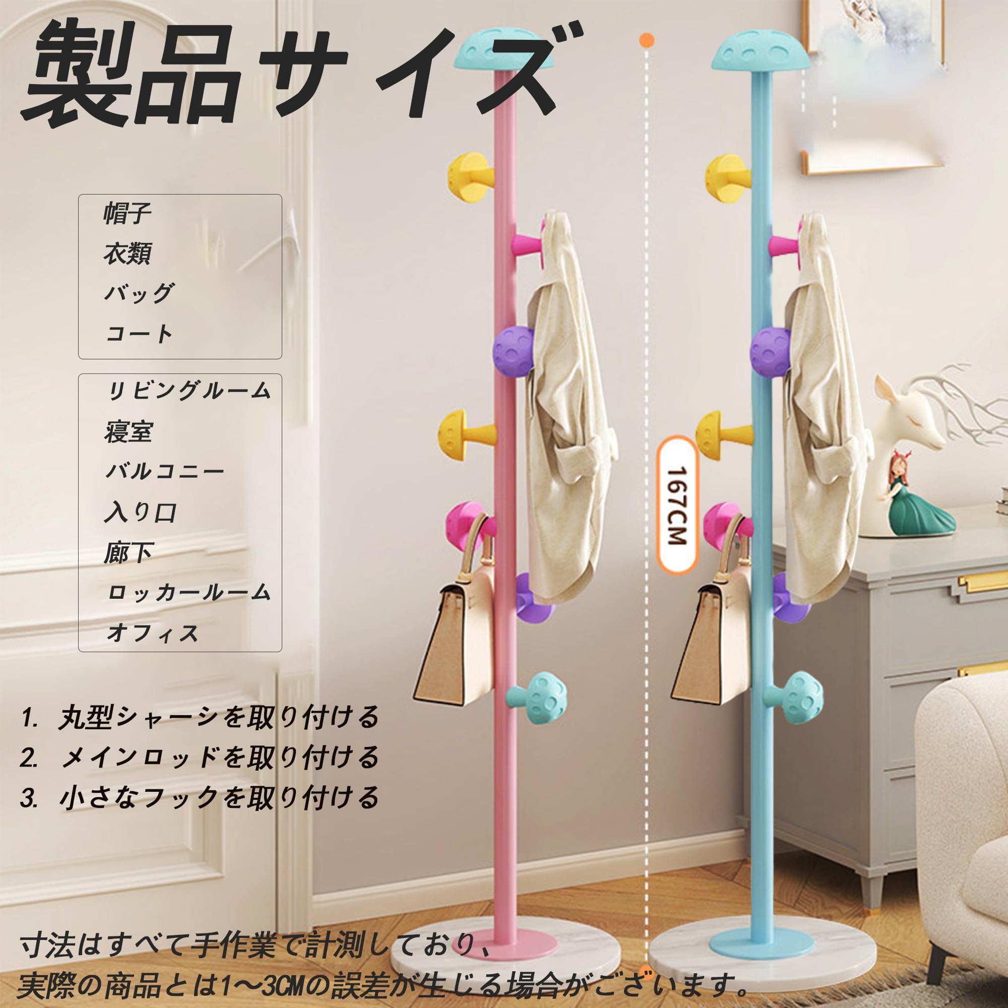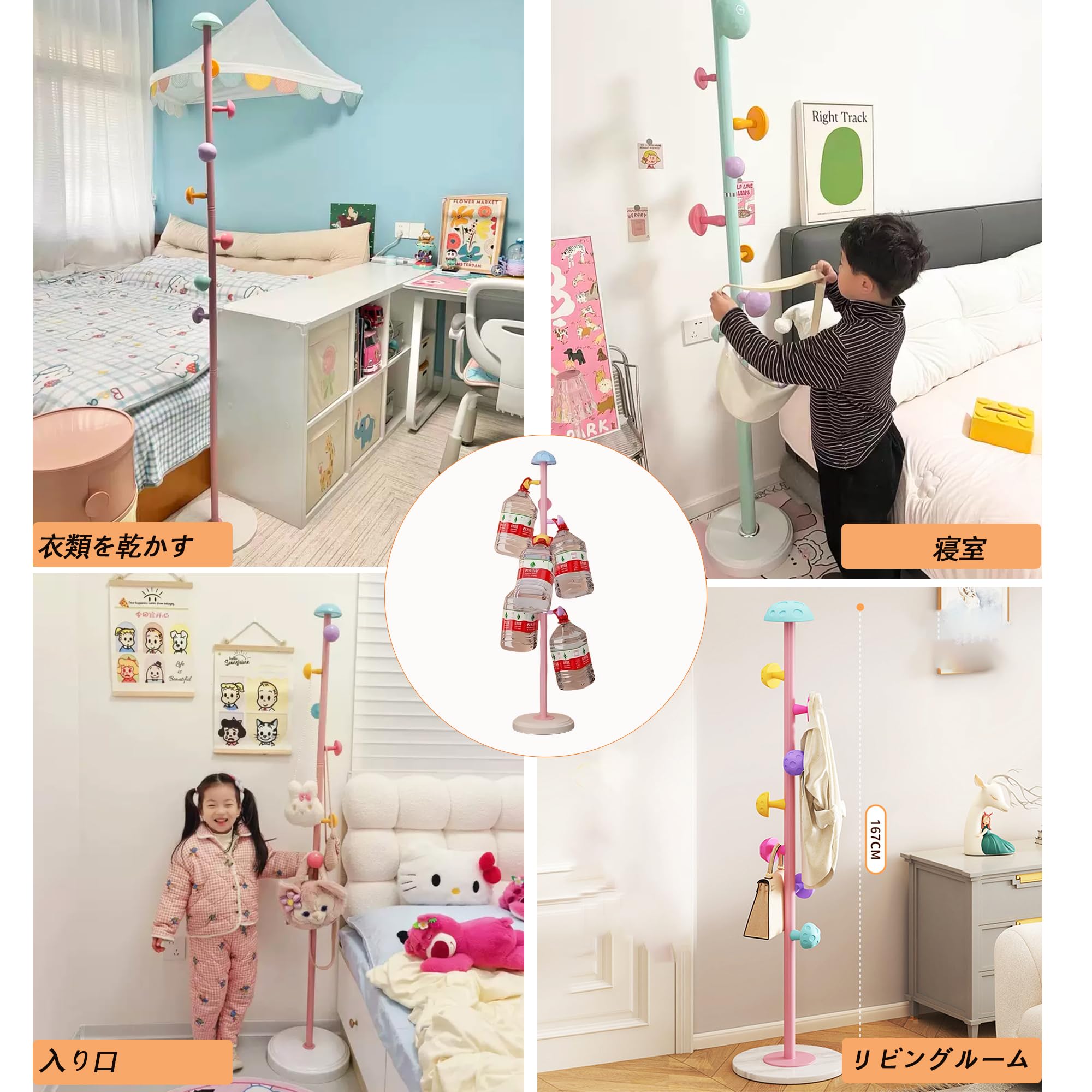 1.製品仕様:ポールハンガー 子供直径30cm×高さ167cm。枝数:7。材質:鉄。鉄は防水性があり、カビが生えにくいです。全体で30kgの耐荷重があります。子どもたちの実践能力を刺激し、良い習慣を養います。