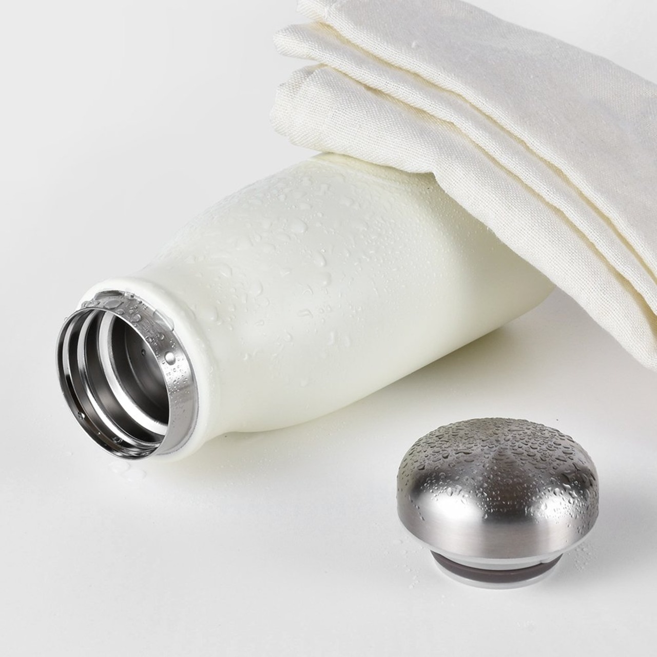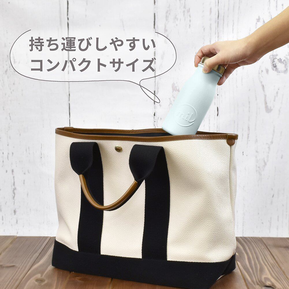 牛乳ビンみたいなまあるい形がかわいいマグボトル。真空断熱構造で保温も保冷もOK。持ち運びやすい容量350ml。