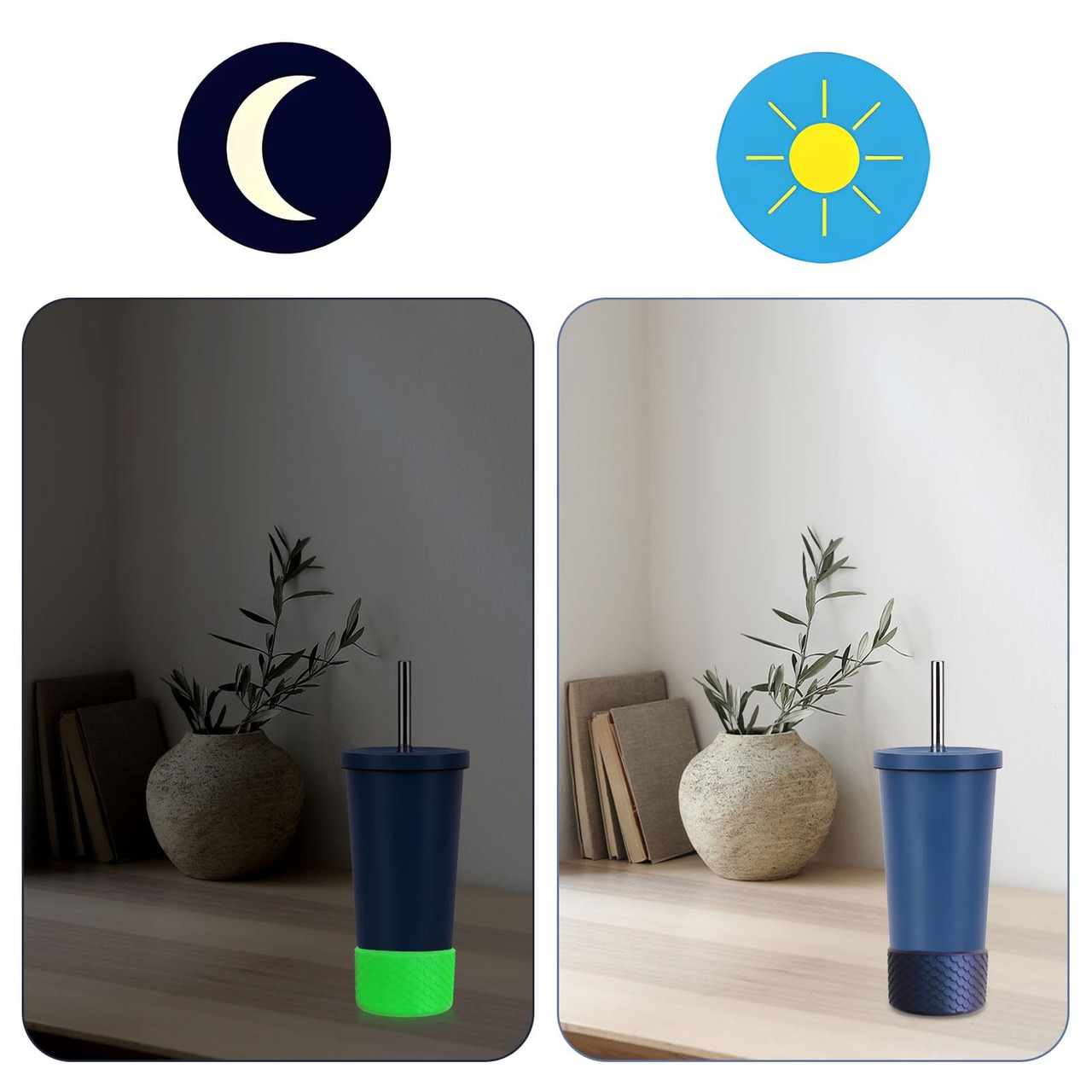 【ナイトライトデザイン】: 水筒保護ブーツは夜に光ることができ、かすかな光が暗い夜でもカップの位置を簡単に確認できるようにし、渇きのために水筒を見つけられないという悩みを和らげ、あなたの生活に便利さを提供します。