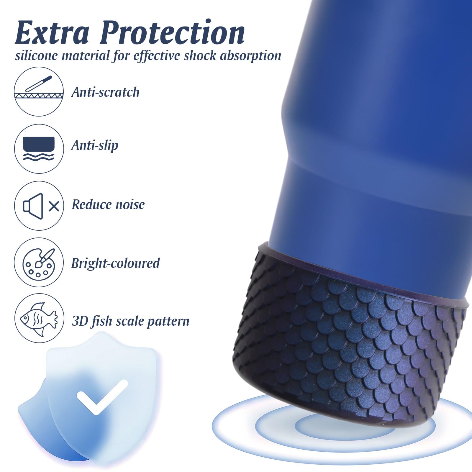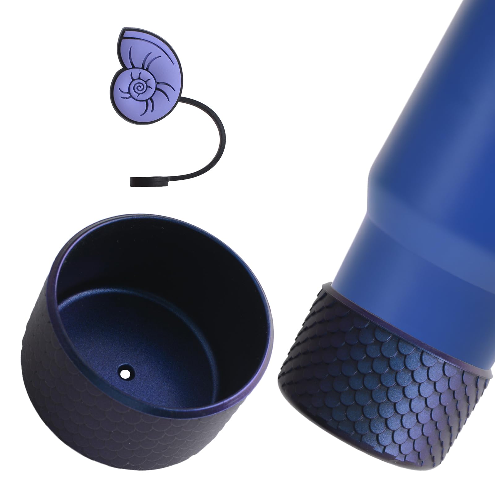 HOMMDECO 3Dフィッシュスケールシリコンブーツ、滑り止め水筒底カップスリーブ、ナイトグロー水筒底プロテクター(サファイアブルー)12-40オンス水筒プロテクター