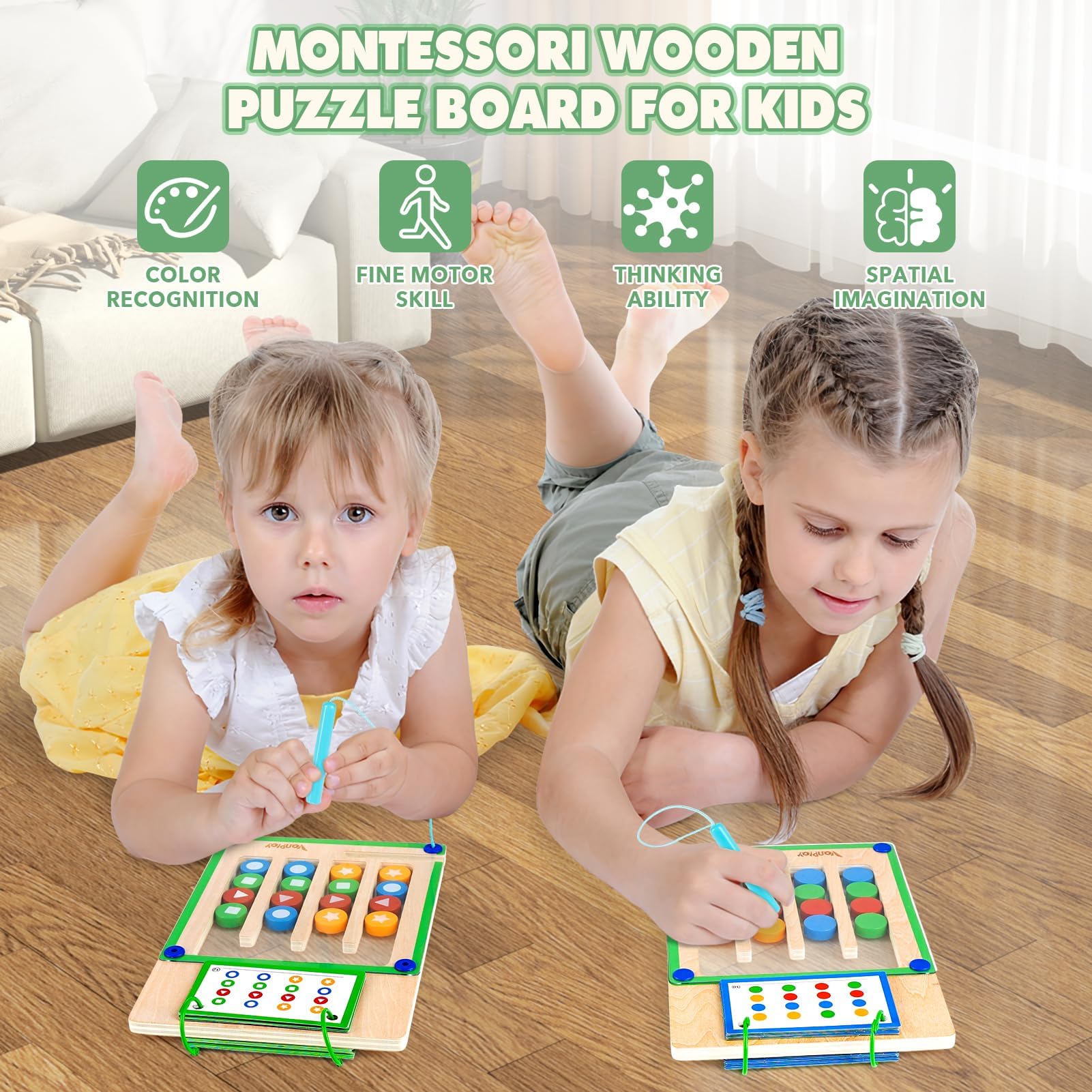 【知育玩具】ジグソービジーボードは、3 4 5 6 7歳の男の子と女の子のためにデザインされた素晴らしい知育玩具です。 4つの色と4つの模様の両面デザインで、ジグソーパズルの木製ピースは、お子さまの色認識、形の分類、手と目の連動、巧緻性、自立した思考を育てます。 整理整頓や繰り返し遊びが好きな自閉症のお子さまに最適です。