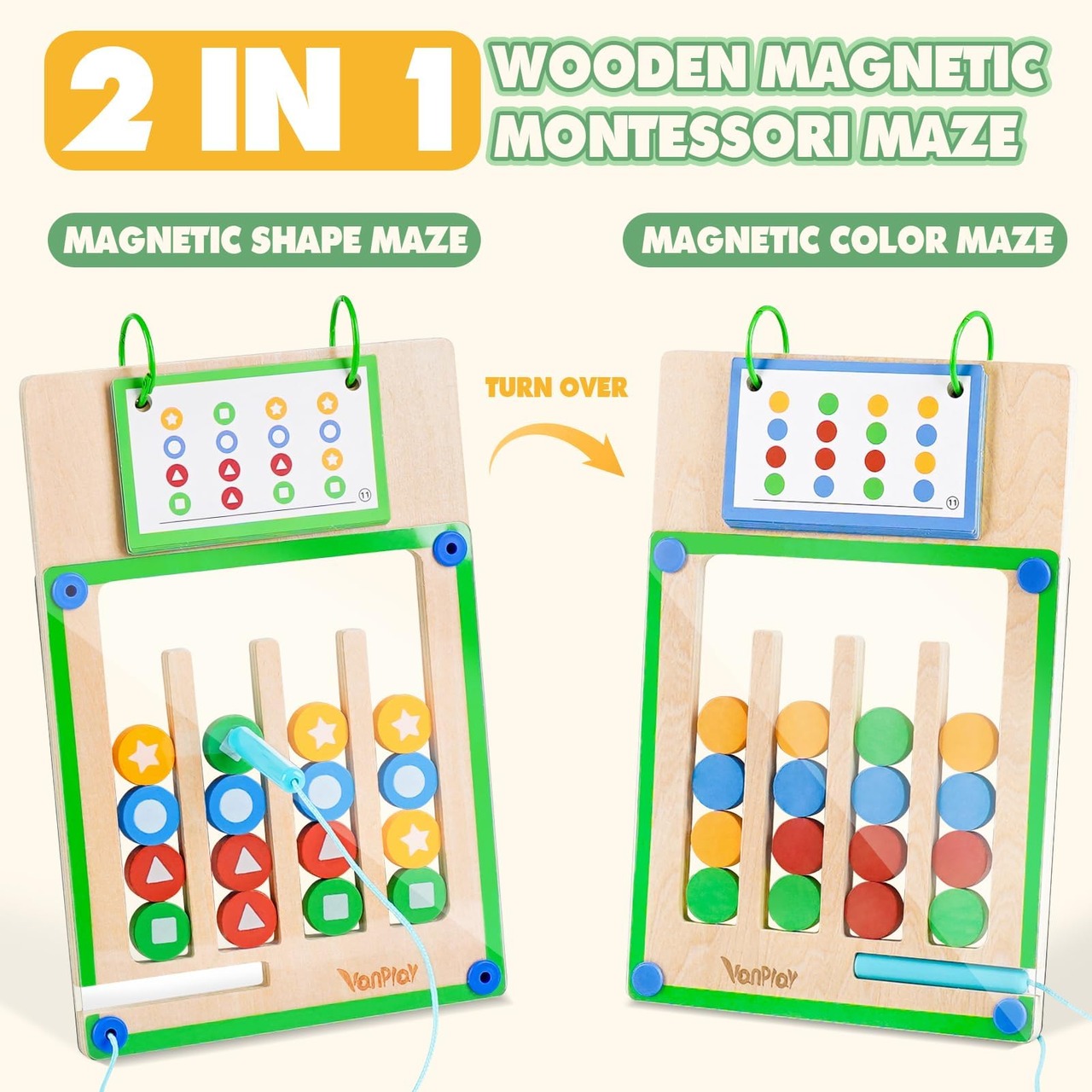 【安全で耐久性のおもちゃ】滑らかなエッジの天然木素材でできており、コンパクトで軽量です。 すべての木製ブロックは、透明アクリル板の下にしっかりと封入され、脱落を防ぎます。 マグネットペンは、紛失を防ぐため、紐でマグネットボードに固定されています。 カードはループファスナーでボードに固定され、遊びながらページをめくることができます。