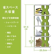 サイズ:27x25x段数の高さ ほとんどipadと同じ大きさです。このサイズなシューズラックは専門に狭い場所「一人暮らしに狭い玄関など」に対応したの設計です。5段のラックには大人靴5足で、各段に1足靴置きことができ、靴収納の需要を満たすと同時によりスペースを節約できます。