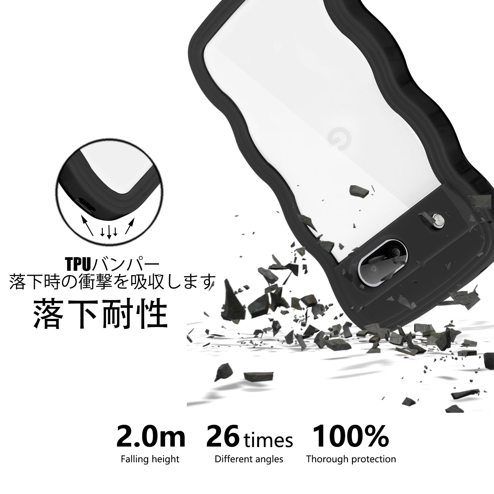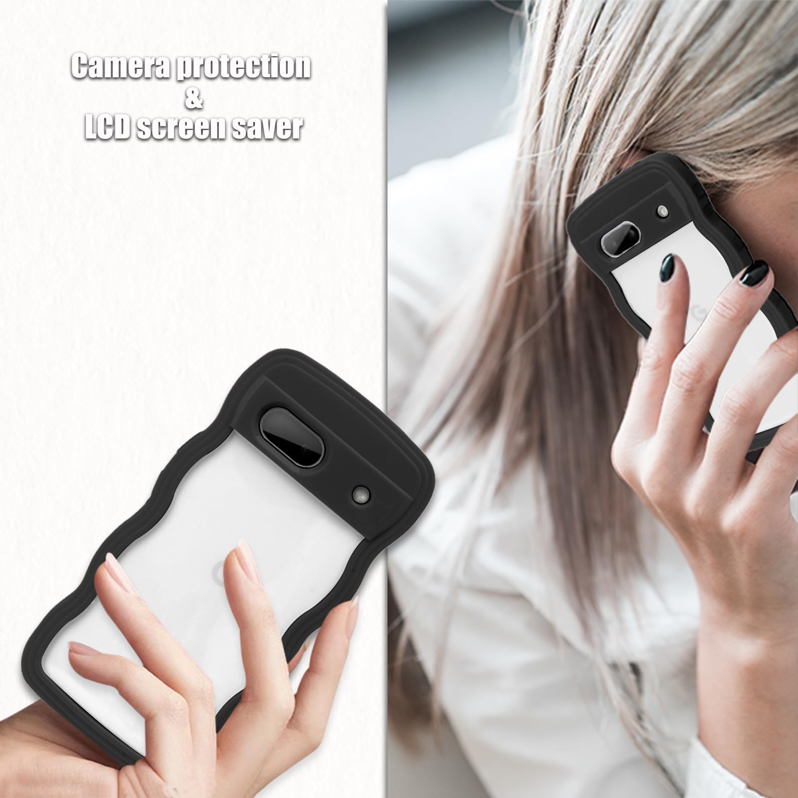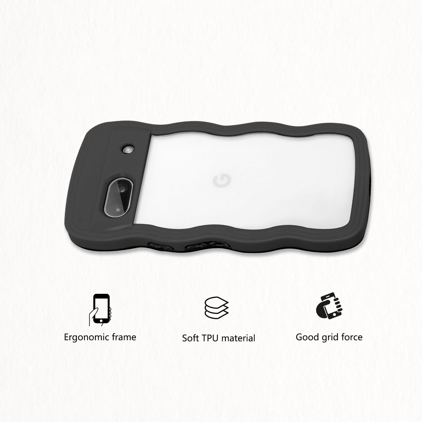 Google Pixel 7 ケース クリア ウェーブ ピクセル 7 TPU波状フレーム うねうね グーグル ピクセル7 滑り止め スマホケースウェーブ デザイン 手にフィット 韓国 可愛い 女性用 女子向け 透明 ケースカバー 人気 落下防止 耐衝撃 ストラップホール付き グーグルピクセル7 なみなみ ワイヤレス充電対応(Google Pixel 7-ブラック)