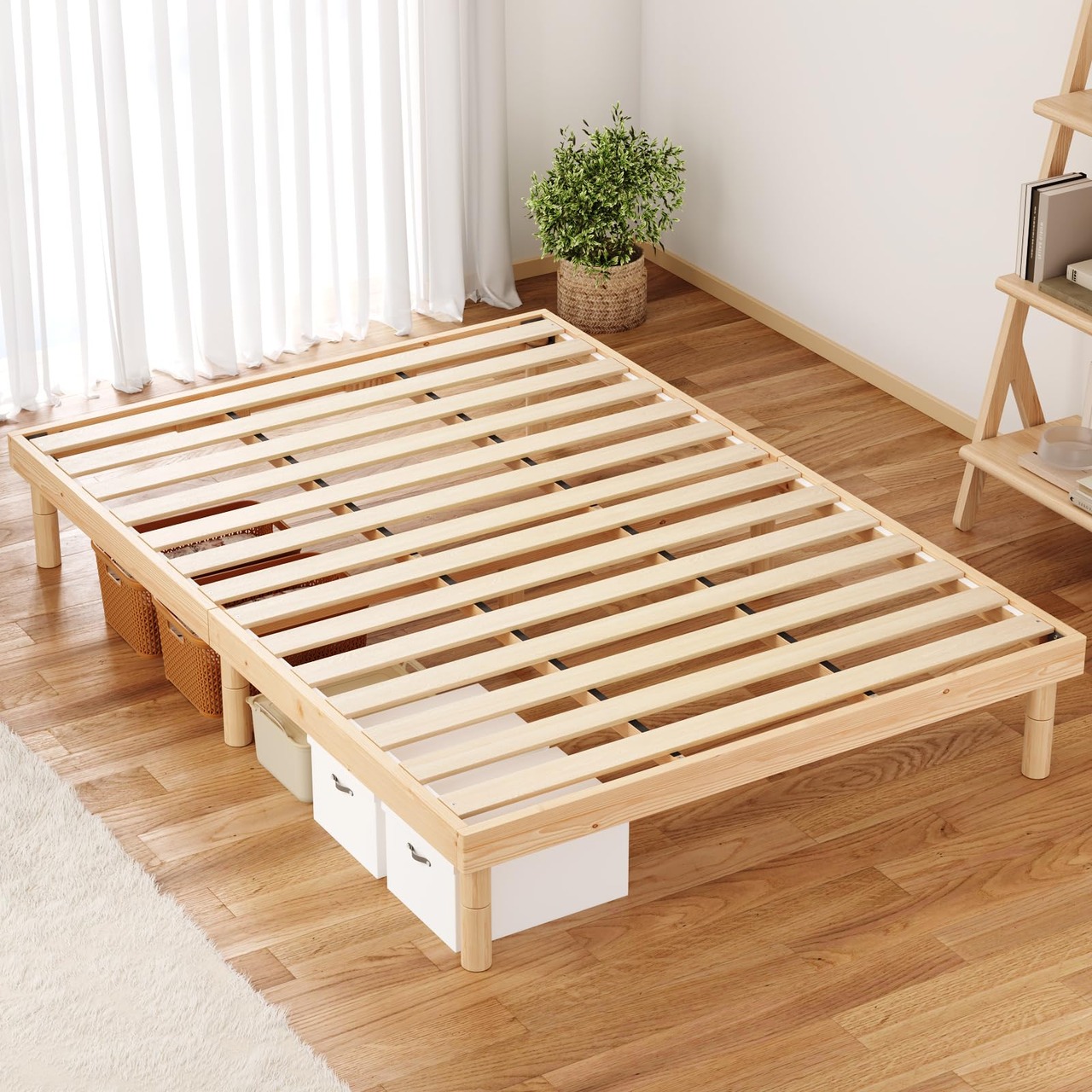 【抜群の通気性】天然の北欧パイン材を使用し、松材は通気性と吸湿性に優れ、木材の自然な孔隙が空気の循環を促進し、湿気をしっかりと逃がして寝具を快適に保ちます。さらに、松材の特有の香りが防虫・防カビ効果を発揮し、睡眠環境を清潔に保つのに役立ち。年間を通じて、快適で健康的な眠りをサポートします。
