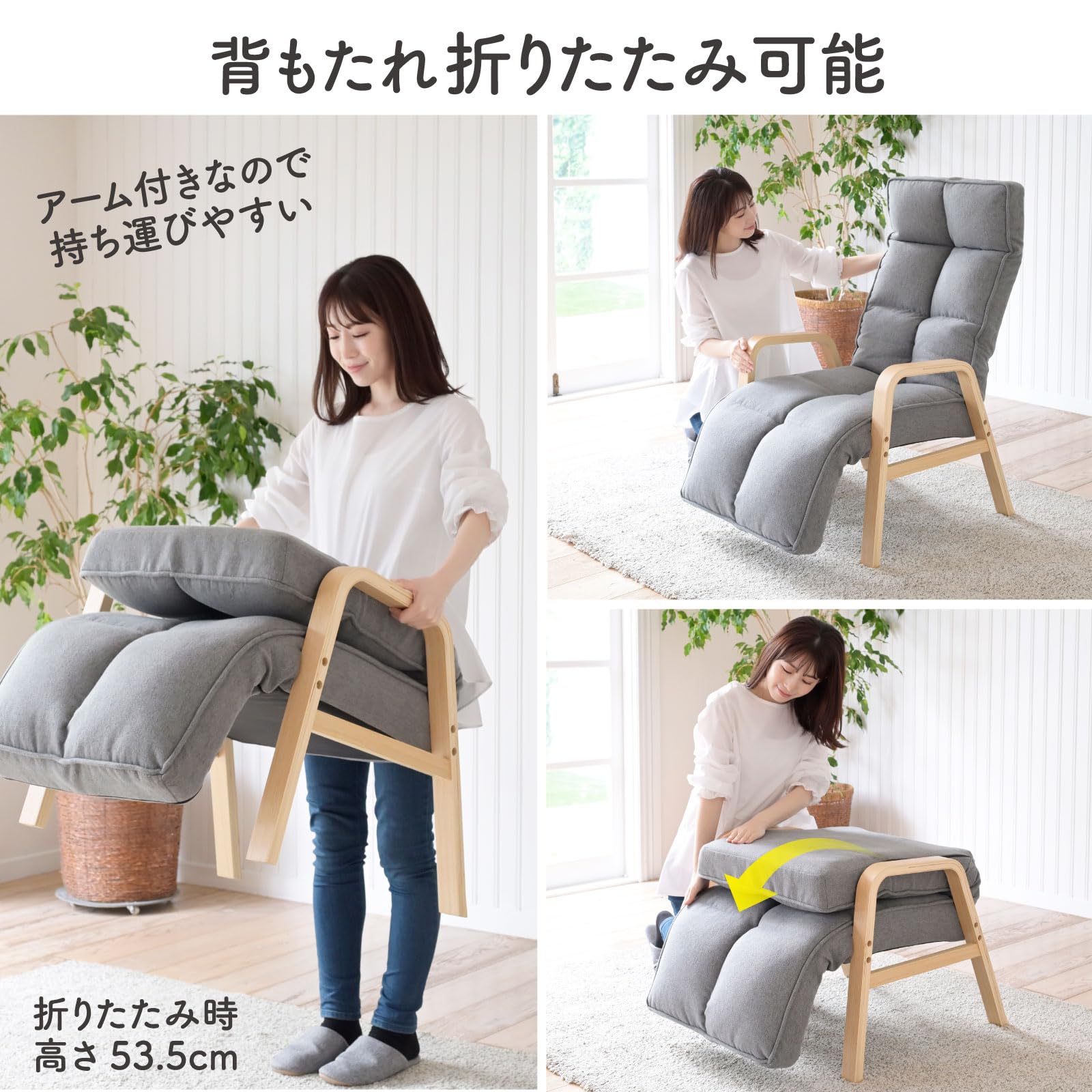 【アーム付き】握りやすい木製の肘掛け付きで、立ちあがりをサポートします。
