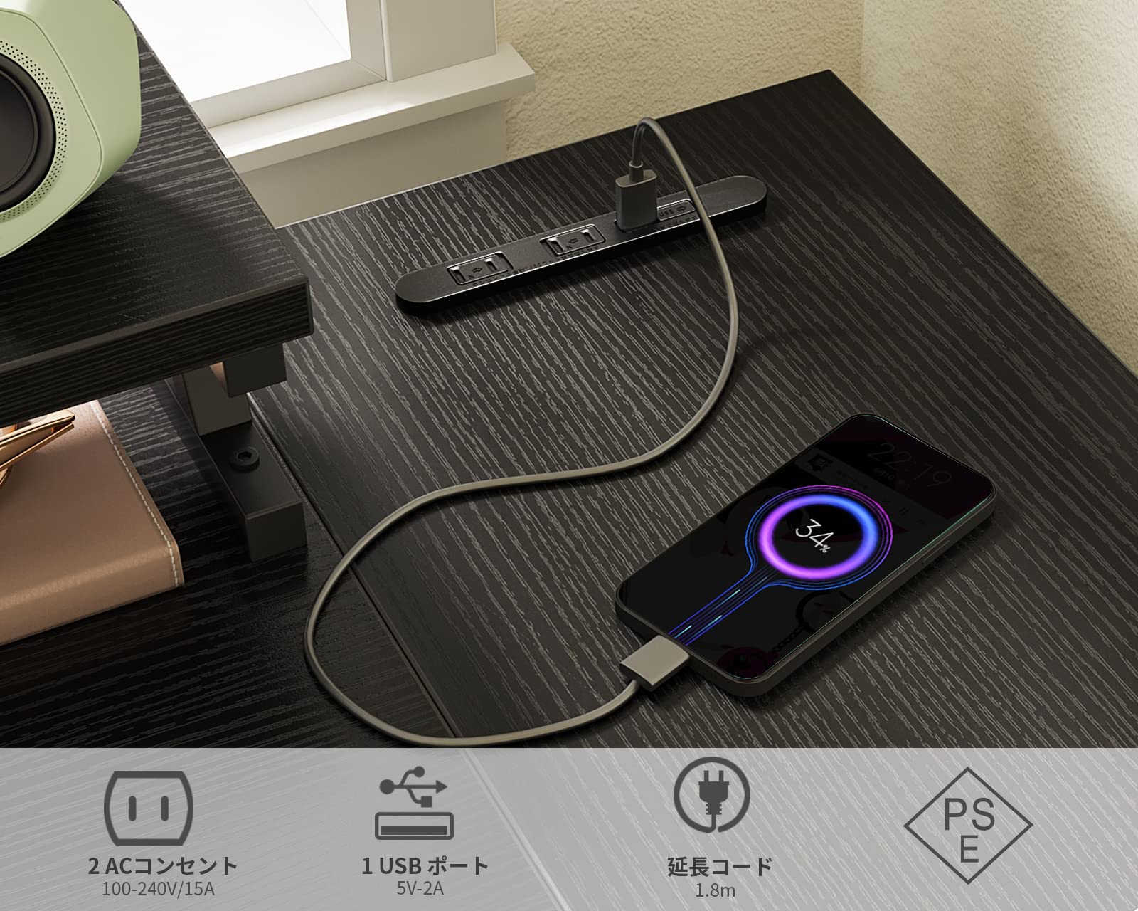 【コンセント付きデスク】パソコンやスマホなどの充電ができて超便利です。デスクの足元には一体型のラックが備え、本や書類などを使いたい時にサッと取り出せます。また、L字型のデザインで部屋のコーナーを最大限に活用でき、ご家庭でもオフィスでも、日常の仕事に十分なスペースを確保できます。