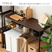 ■天板がヴィンテージ感のあるウッドシェルフとスタイリッシュなソリッドシェルフ2種類から選べるキッチンラック/キッチン作業台です。 ■デッドスペースになりがちなゴミ箱上を使い勝手のいい作業台、キッチン収納に。 ■キッチン用品や炊飯器、トースターなどのキッチン家電をひとまとめにして使いやすいキッチンスペースに ■重たいものも載せられる頑丈設計!大型レンジ台や食洗機ラック、食洗機台としても ■ハンマートーン塗装で防錆性が高く傷にも強い塗装なので水回りでの使用も安心。
