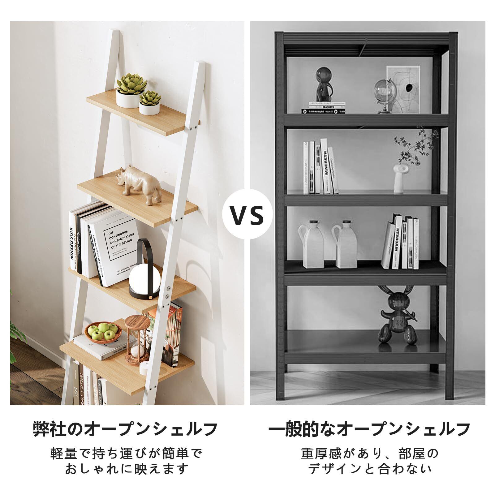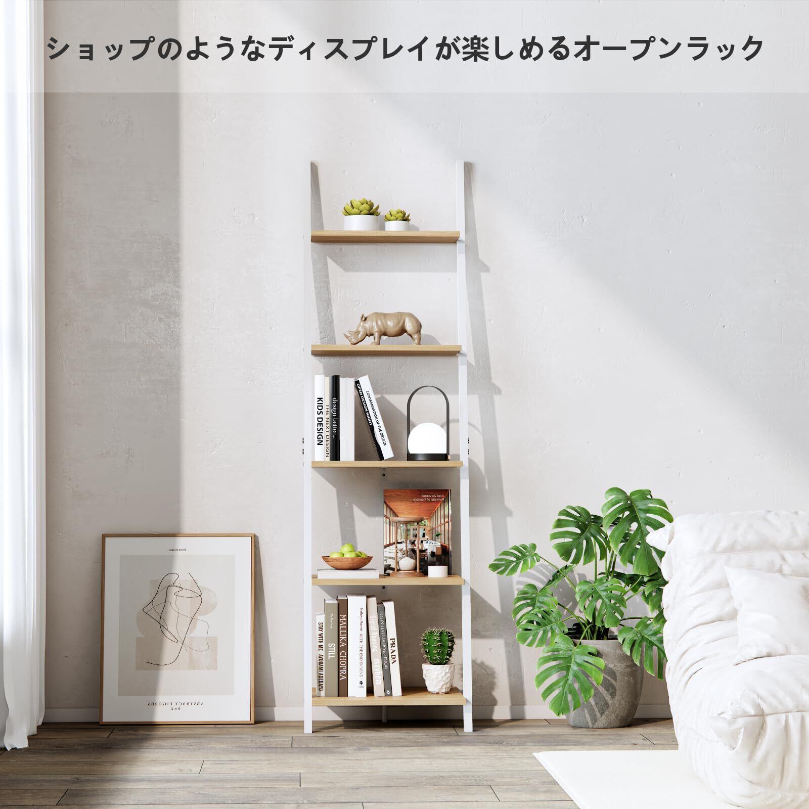 【多機能収納&省スペース】全部で5段があり、空間が大きいです。こちらのシェルフは、本や小物を並べたり、植物を置いたり、食器を飾ったりと、オープンタイプならではの自由な使い方が可能です。単調な生活に質をもたらす。