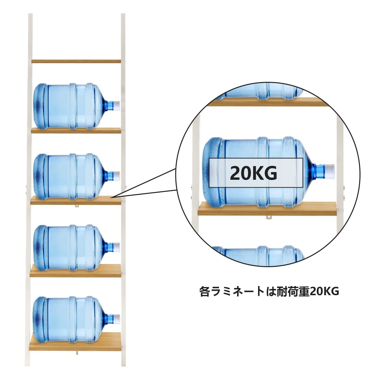 【商品サイズ(約)】幅45×奥行35×高さ154.3cm。商品重量(約):8.44kg。耐荷重(約):棚板各20kg。材質:MDF・スチール。