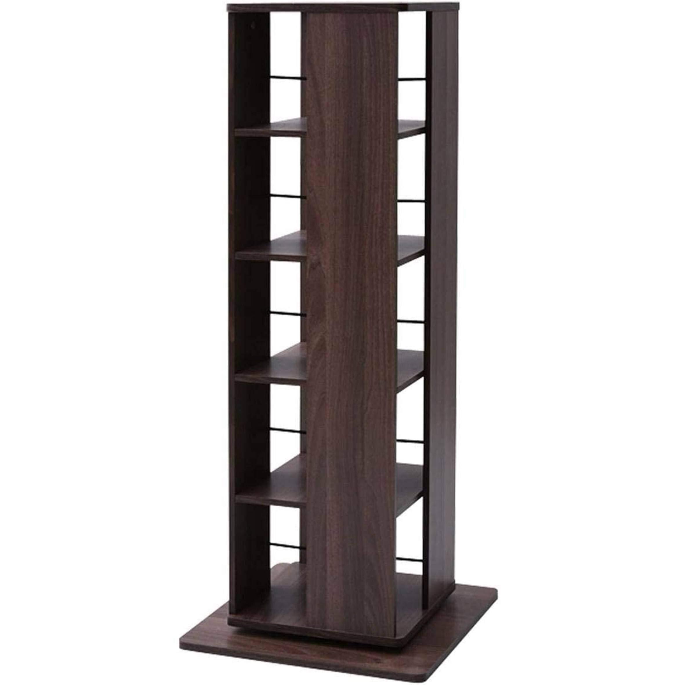 【特価セール】山善(YAMAZEN) 回転本棚 幅45×奥行45×高さ115.5cm 5段 壁付け・角置き可 コンパクト 大容量 組立品 ウォルナット DSRR-5(WL)