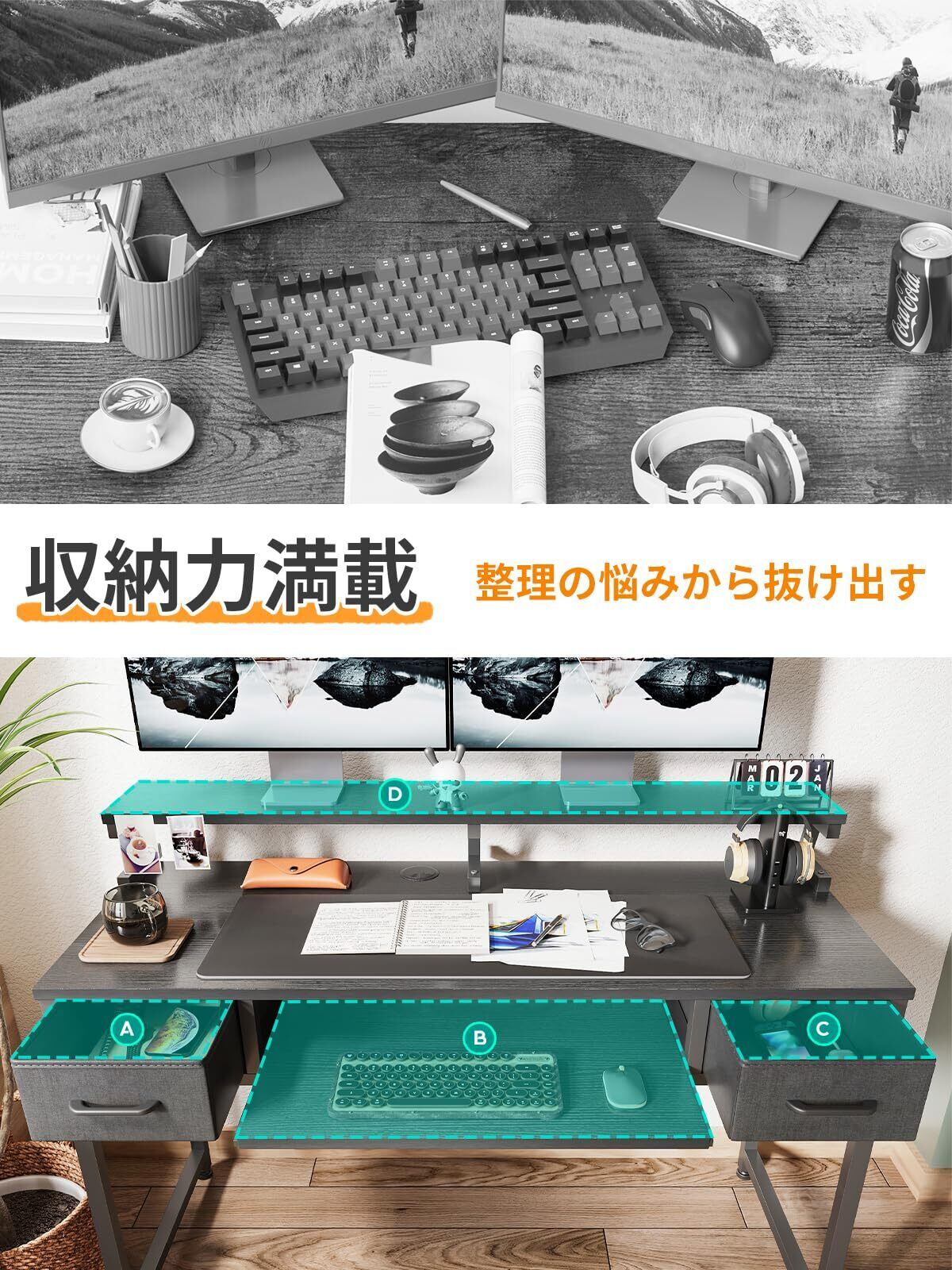 【広々とした空間、しっかりとした作り】3段構造のパソコンデスクなので、広々使える作業スペースができる。様々な業務が同時進行でき、仕事の効率が大幅にアップ。強度と耐久性が高いスチールフレームを採用しており、がたつかなくしっかりした使用感を差し上げます。万が一ご購入した商品に初期不良が発生した場合、いつでもお気軽にお問い合わせください。