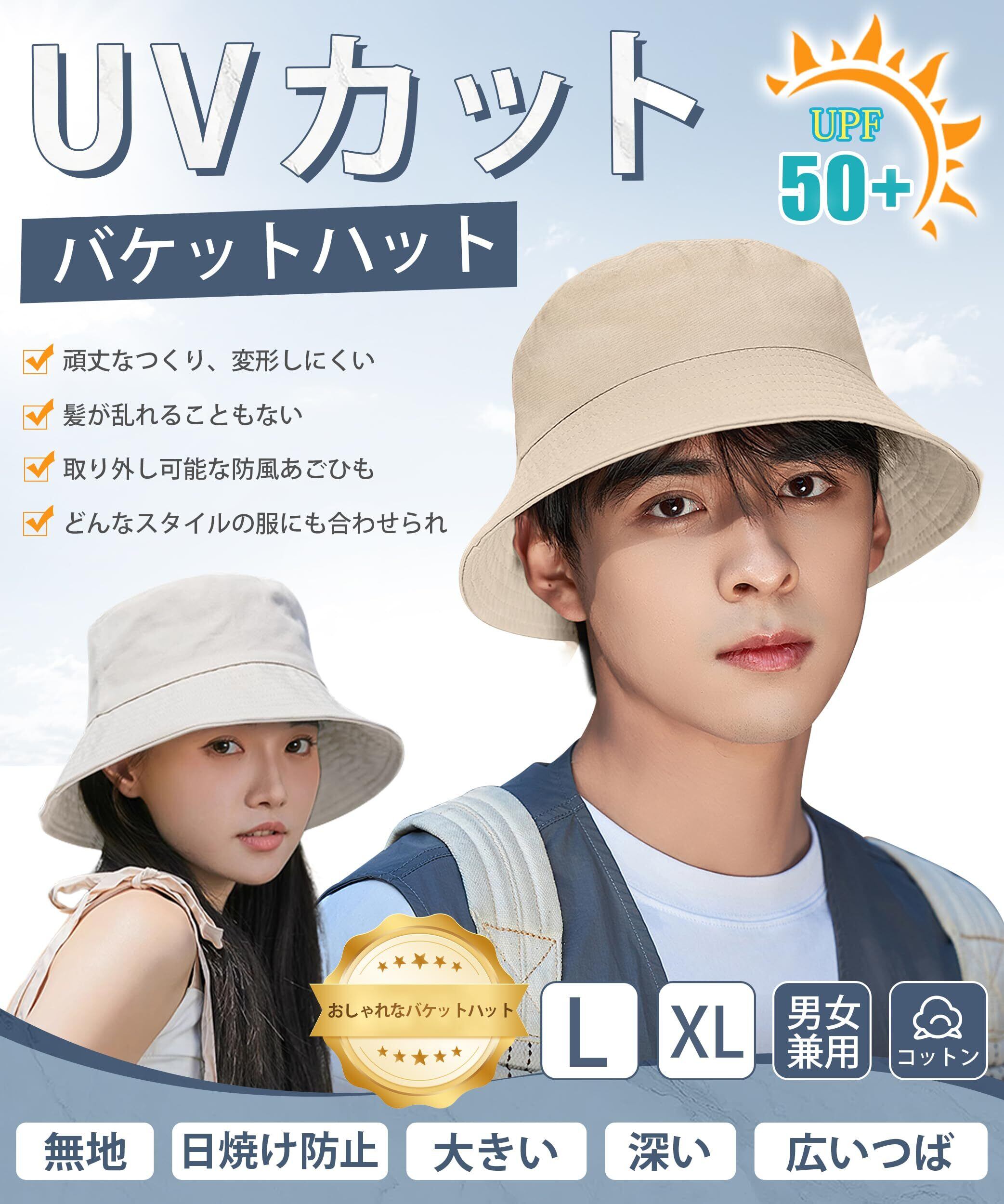 バケットハット メンズ コットン【髪が乱れない】 サファリハット 大きめ 深め つば広 日除け ファション UVカット 帽子 メンズ UPF50+ 日焼け防止 紫外線対策 軽量 無地 小顔 通気速乾 防風あごひも 2サイズ 男女兼用