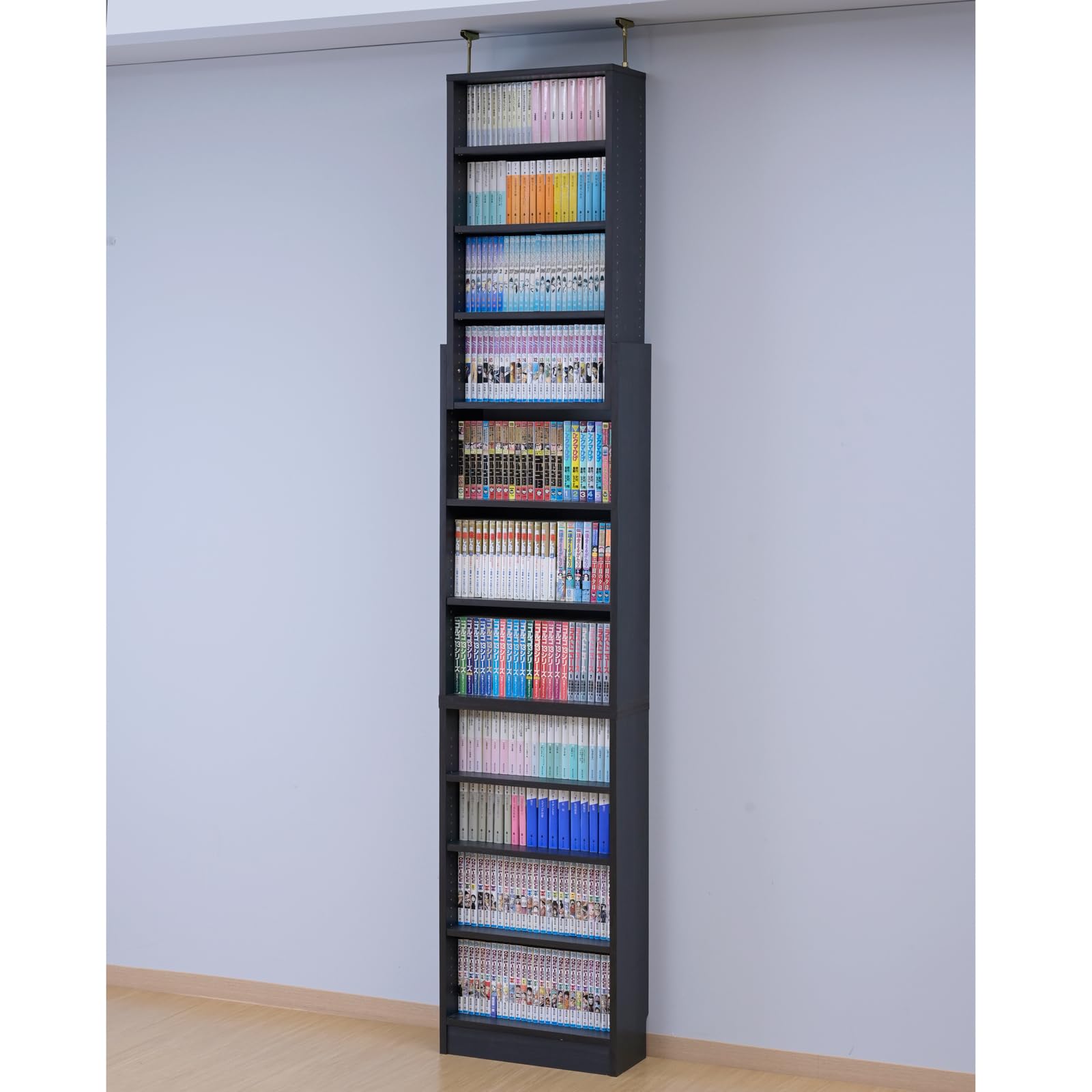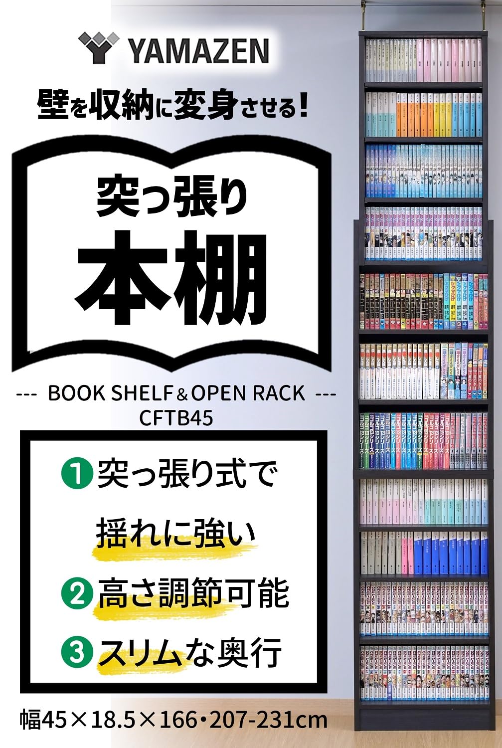 山善(YAMAZEN) 本棚 大容量 スリム 突っ張り式 棚板高さ調節 幅45×奥行18.5×166・207-231cm 壁にピッタリ 漫画 コミック ラック 収納 組立品 ダークブラウン CFTB45(DBR)