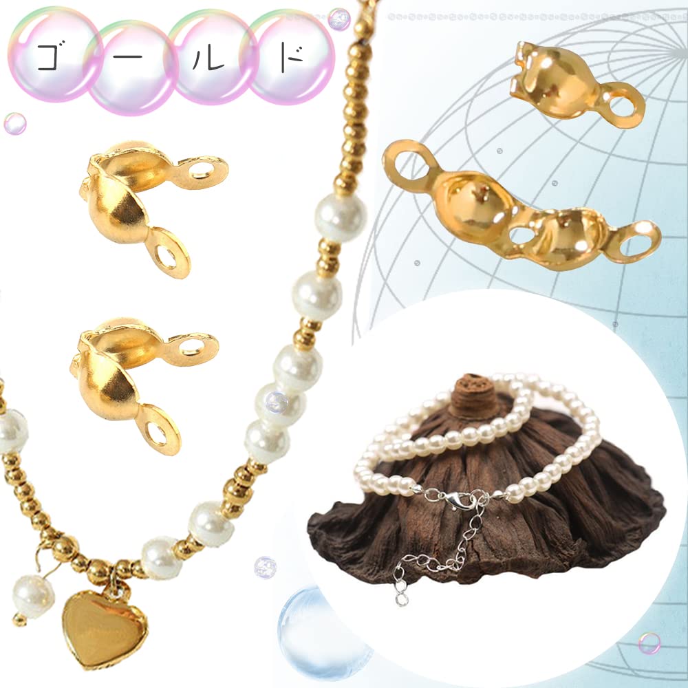 ボールチップ カシメ玉 400個セット 304 ステンレス エンドパーツ 留め具 基礎金具 ビーズ ボールチップ つぶし玉 アクセサリーパーツ 手芸用品 手作りアクセサリー DIY用 ブレスレット ネックレス用 ゴールド/シルバー各200個 (4*7mm 前面開口部)