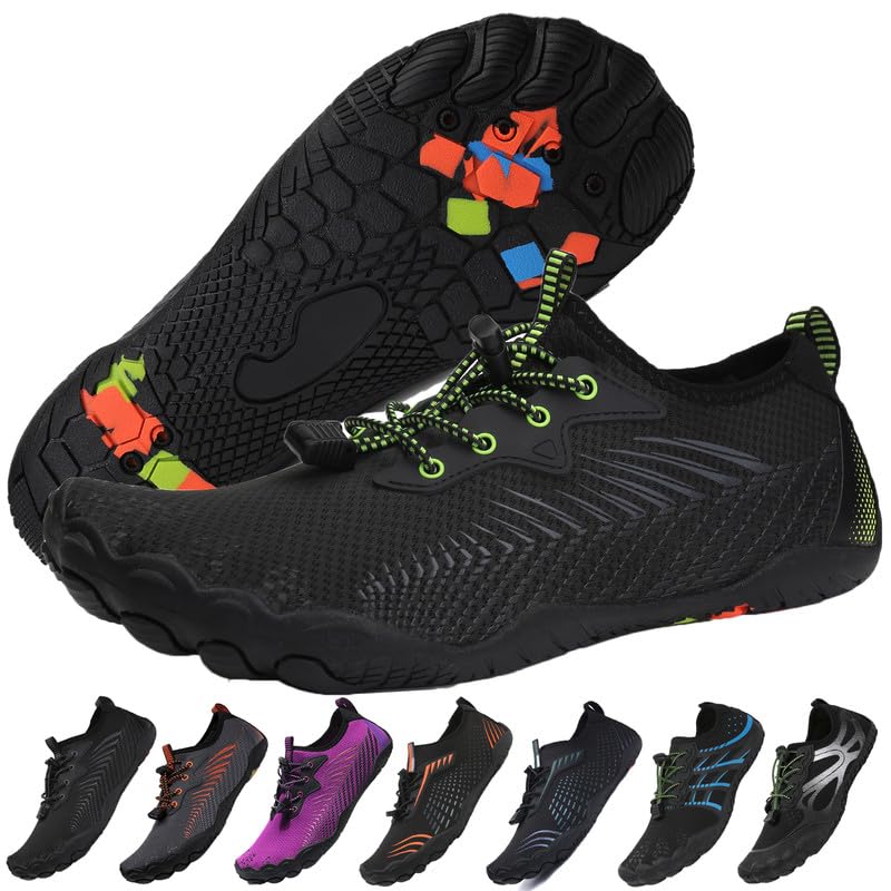 【耐久性&滑り止め】丈夫で滑りにくいゴム底なので、強力なグリップ力で、お客様を安全に導きます、プールの横や野生で滑るのを防ぎます。ユニークで耐久性のあるソールは、各底に穴を開け、より涼しく健康な靴環境を作成するそれらの適切な水の流れを確保し、速乾性、ウォータースポーツ中に超快適。
