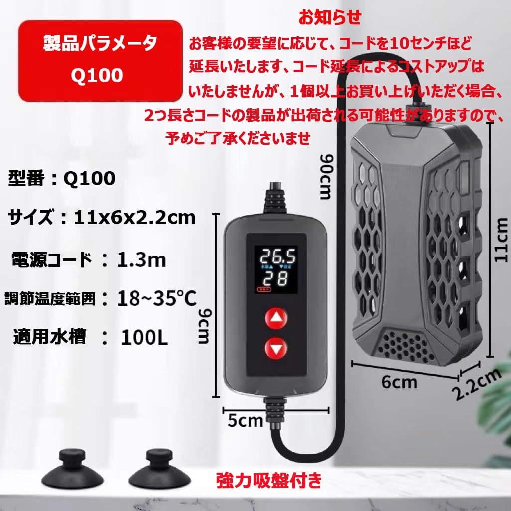 【新着商品】QOSEREN 水槽 ヒーター コントローラー 温度調整 サーモスタット付き 水中 ヒーター 水槽水温管理用 デジタル表示 自動恒温 ヒーター 保護カバーと設置吸盤付き 縦横設置 熱帯魚 淡海水適用 100W
