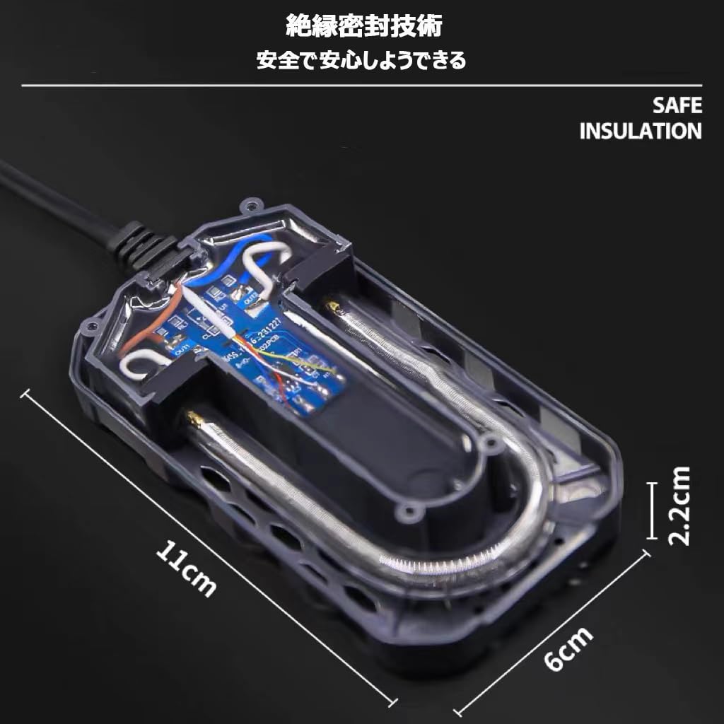 QOSEREN水槽用 ヒーター:石英防爆ガラス加熱材を使用し、密封安全保護カバーも付き、空気中に出た時の作動停止機能が付いており、空焼きを防ぐことができて、もっと安全で、安心してご利用いただける。寒暖差の激しい四季折々の日本で熱帯魚を飼うのに不可欠なパートナーです。