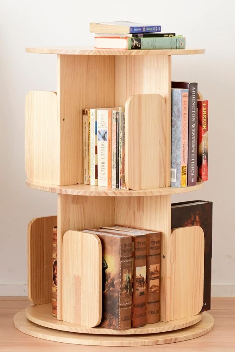 【新着商品】山善(YAMAZEN) 本棚 (回転式本棚) 絵本棚 天板に物が置ける A4が入る高さ 2段 (直径50cm×高さ67.5cm) 天然木 漫画 小さい本棚 ブックシェルフ 組立品 ナチュラル TKR-2(NA)