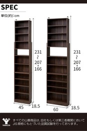 ●本体サイズ : 幅45×奥行18.5×166・207-231cm●全体耐荷重 : 150㎏(棚板耐荷重 : 1枚あたり10㎏)●構造部材 : プリント紙化粧繊維板、プリント紙化粧パーティクルボード●東証プライム(株)山善で扱うすべての山善商品は、自社もしくは第三者機関において、JIS規格に基づいた品質試験を行っております。