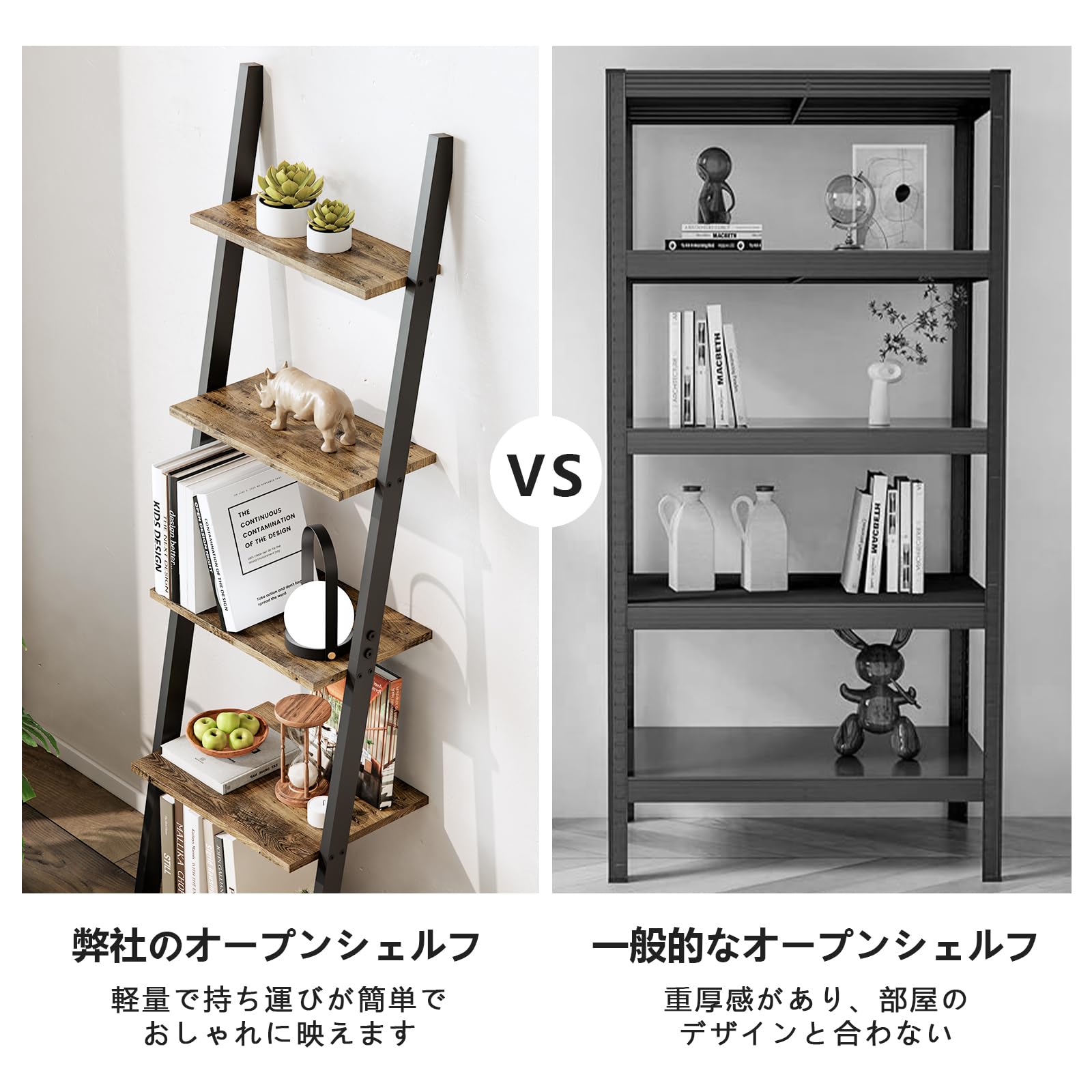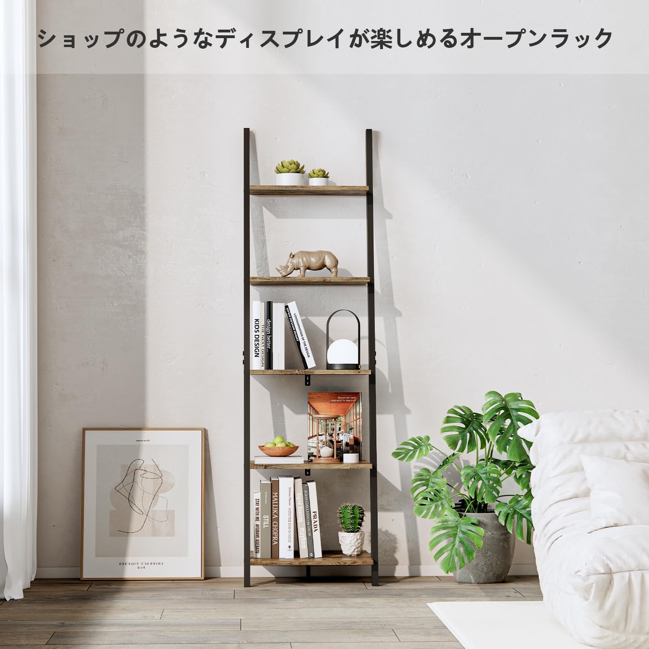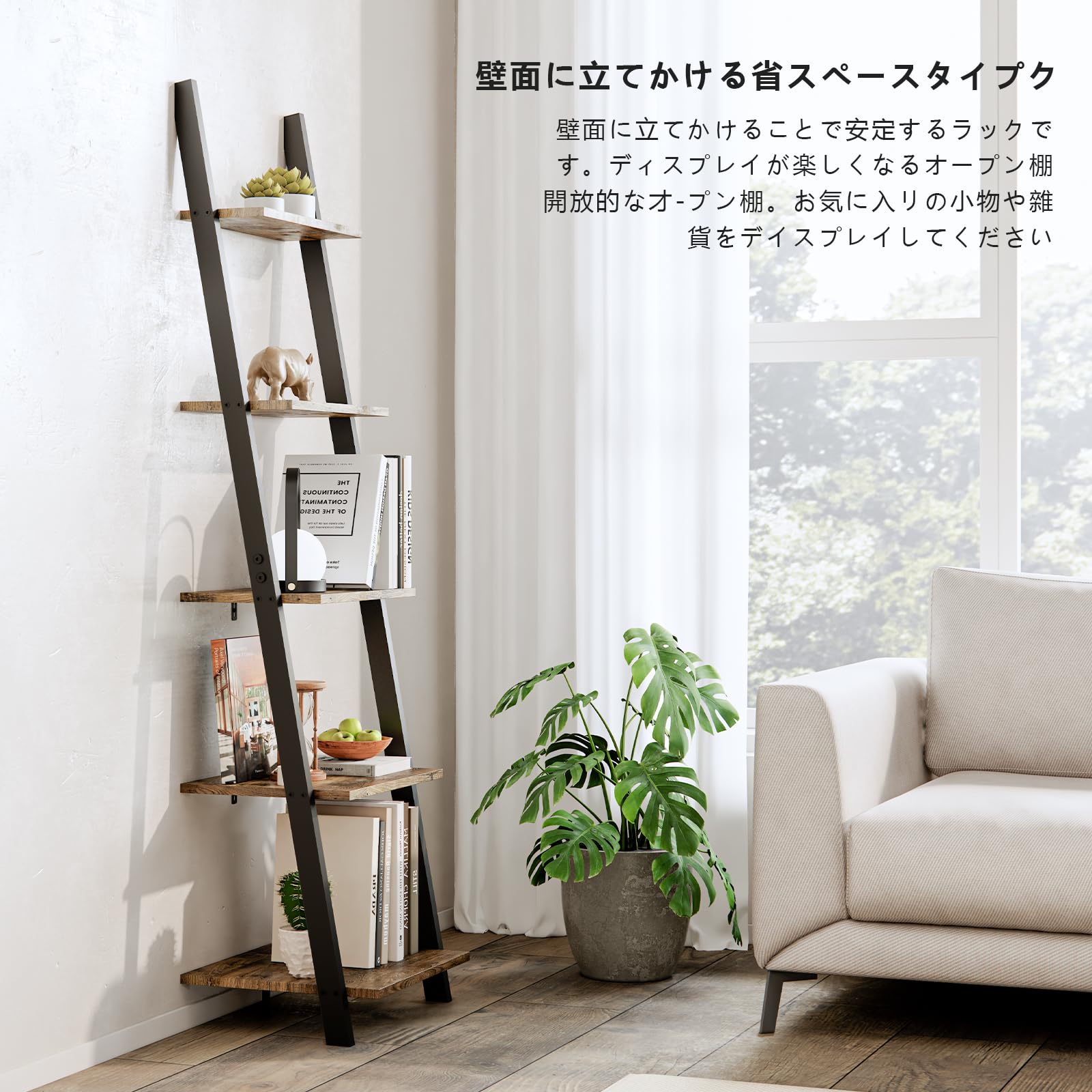【多機能収納&省スペース】全部で5段があり、空間が大きいです。こちらのシェルフは、本や小物を並べたり、植物を置いたり、食器を飾ったりと、オープンタイプならではの自由な使い方が可能です。単調な生活に質をもたらす。