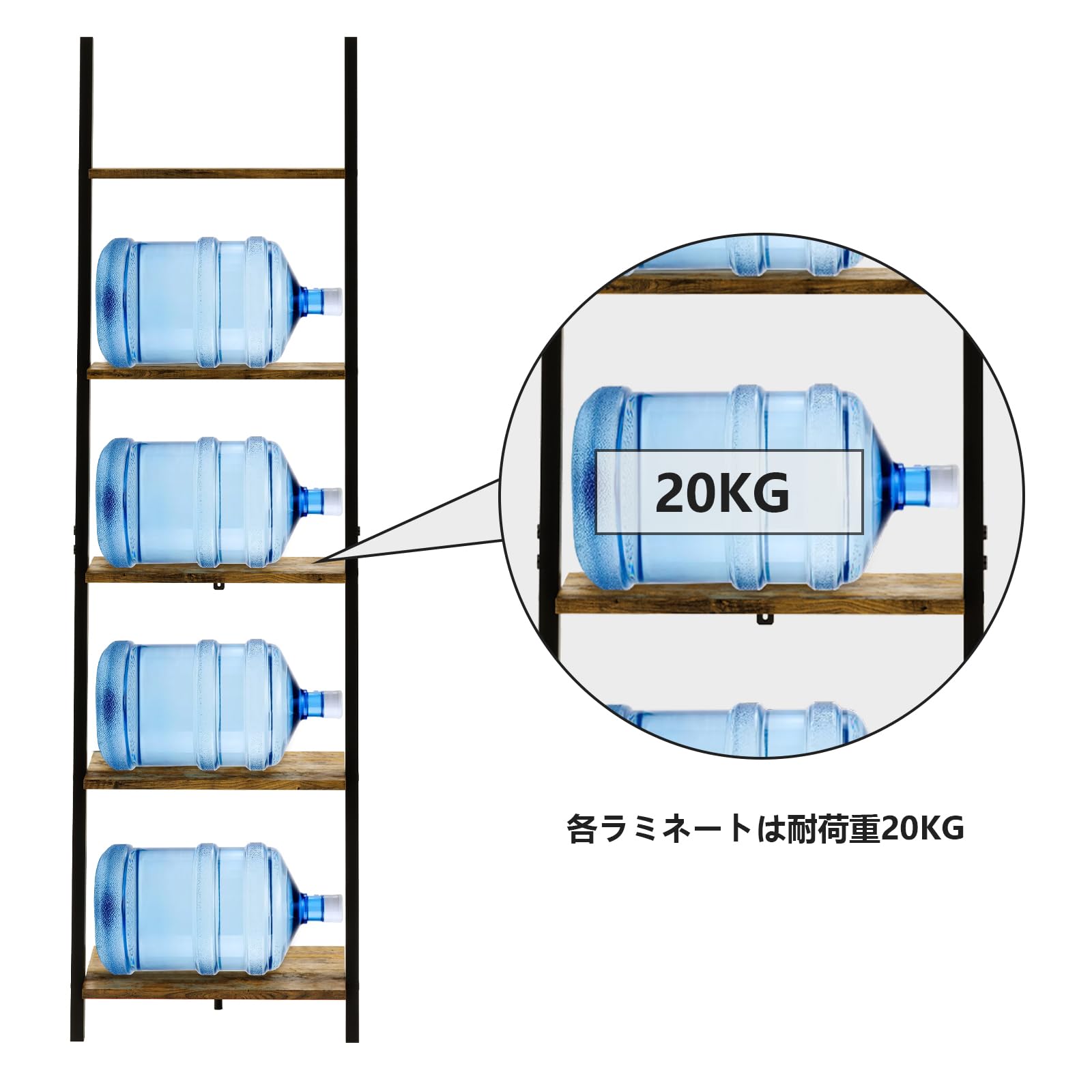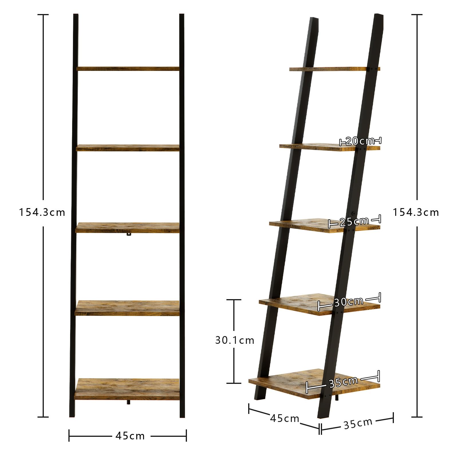 【商品サイズ(約)】幅45×奥行35×高さ154.3cm。商品重量(約):8.44kg。耐荷重(約):棚板各20kg。材質:MDF・スチール。
