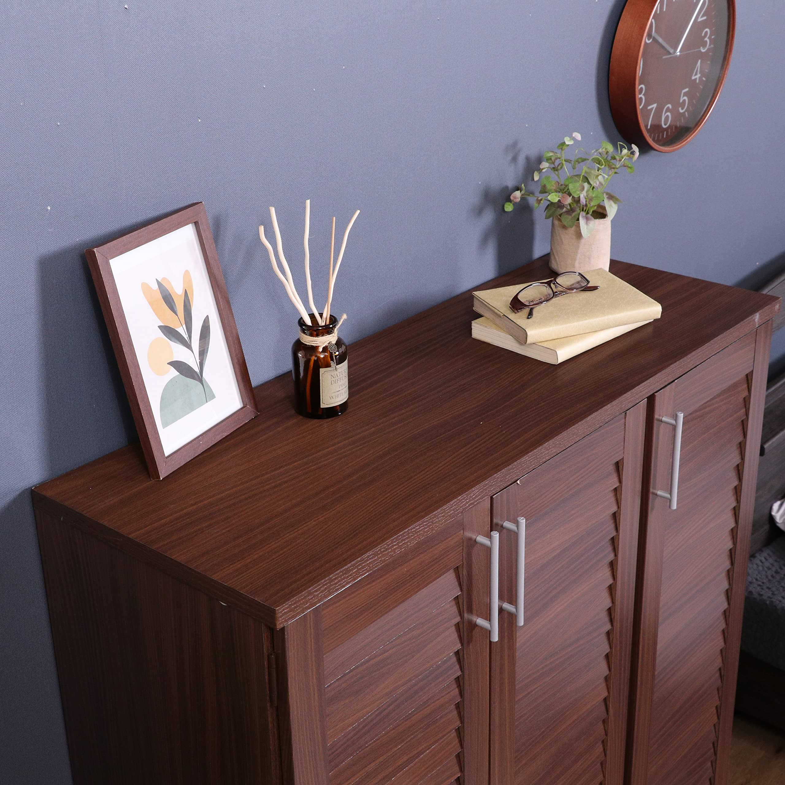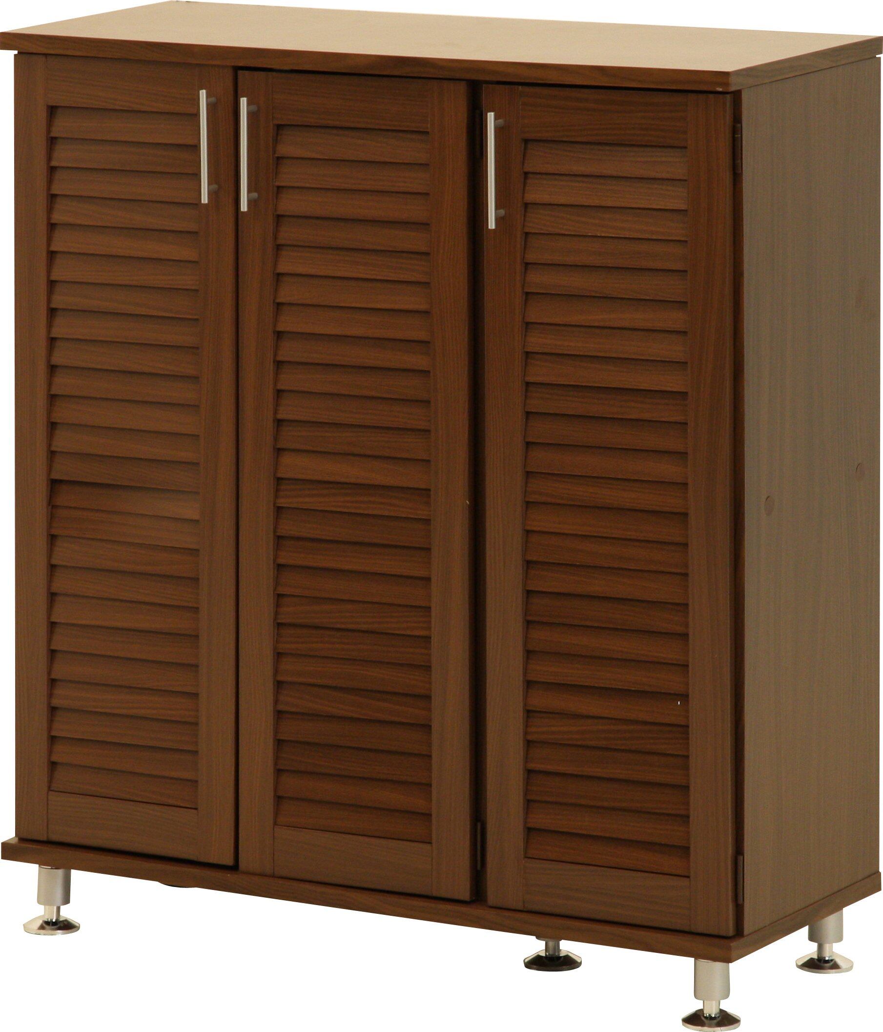不二貿易 下駄箱 シューズボックス 6段 幅90.5×奥行33×高さ101cm ブラウン 可動棚 ルーバータイプ 靴箱 リビング収納 ワイド 90483