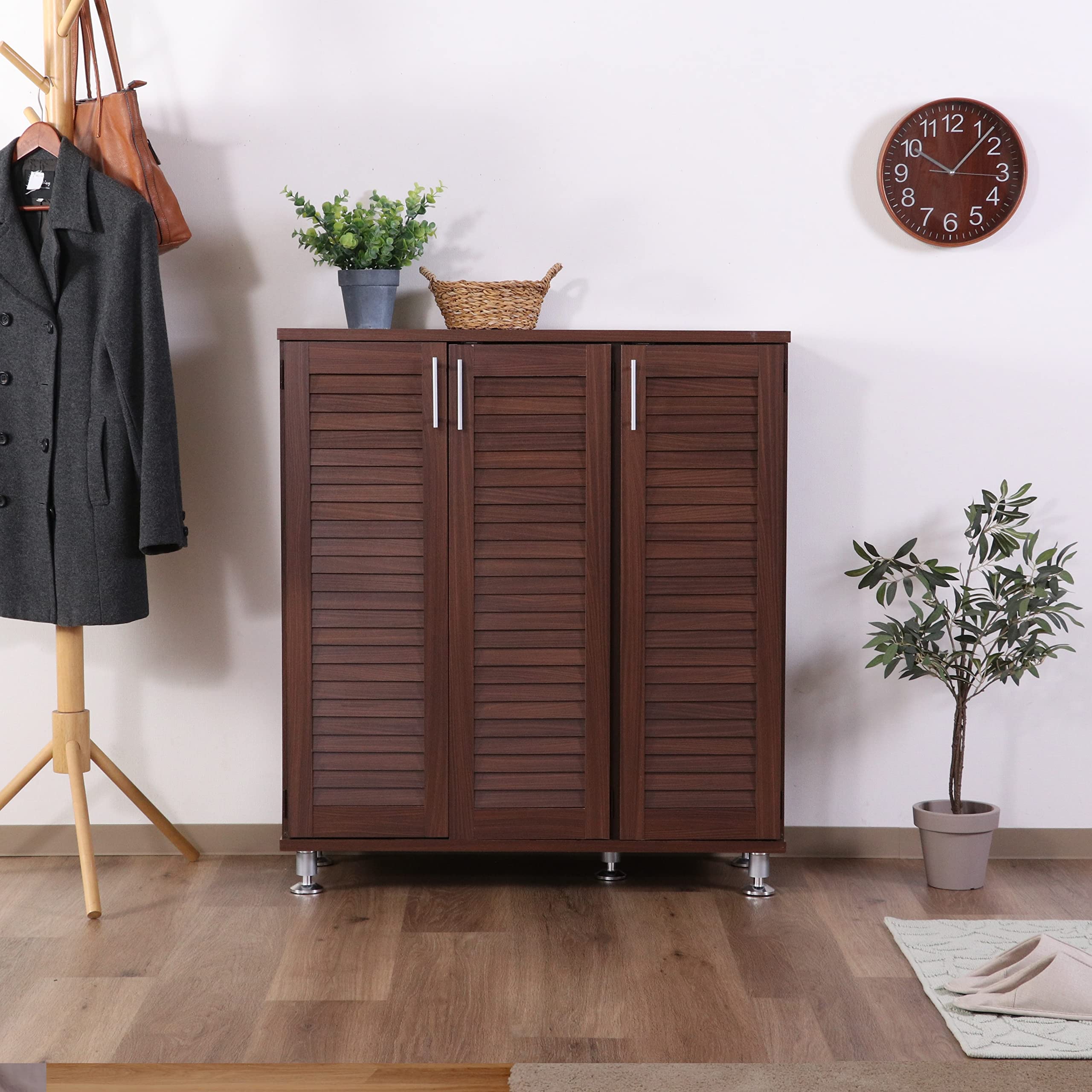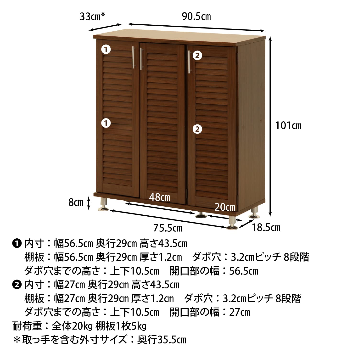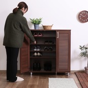 可動棚で、長いブーツも収納可能。扉は通気性の高いルーバー扉を使用しています。脚付きなので本体の下にも収納可能です。