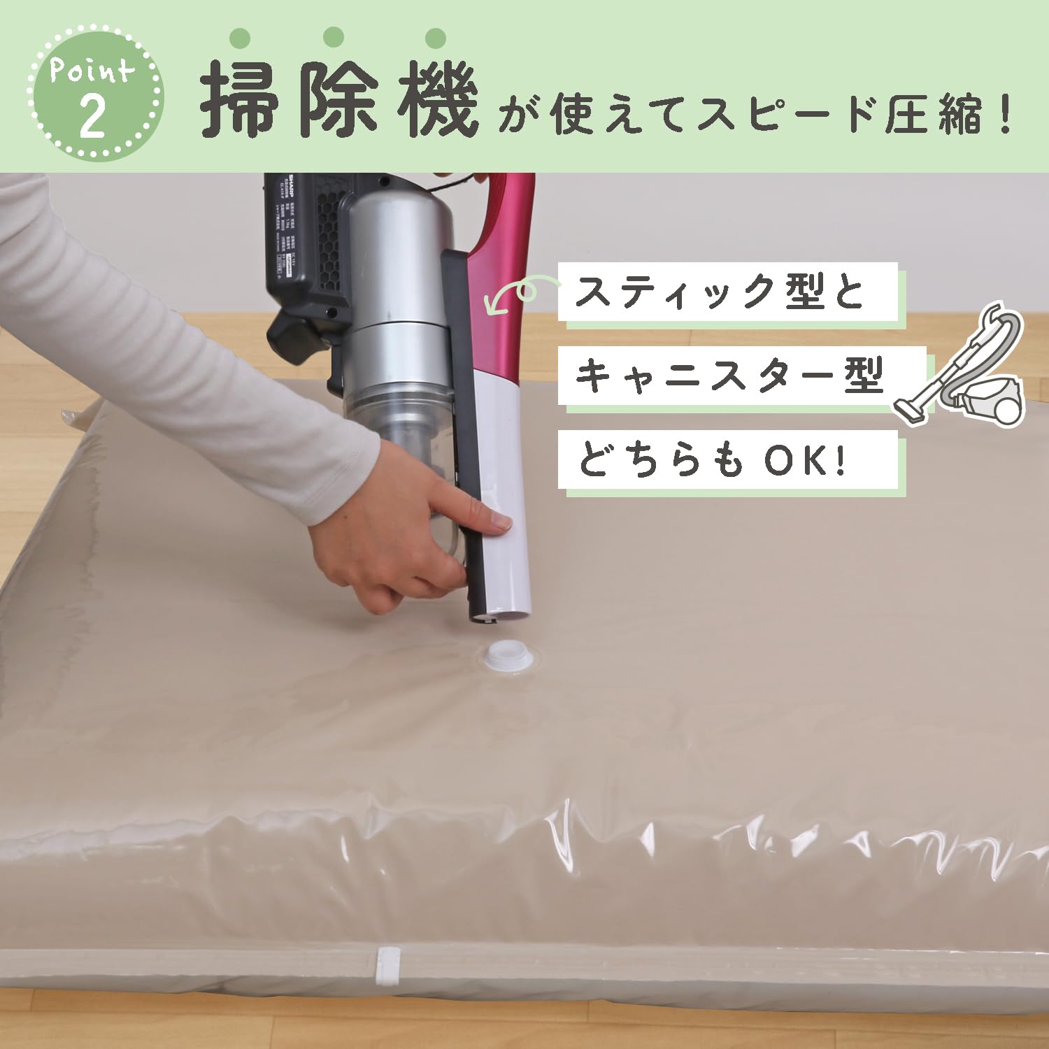 ●掃除機の機種などによっては圧縮できない場合があります。