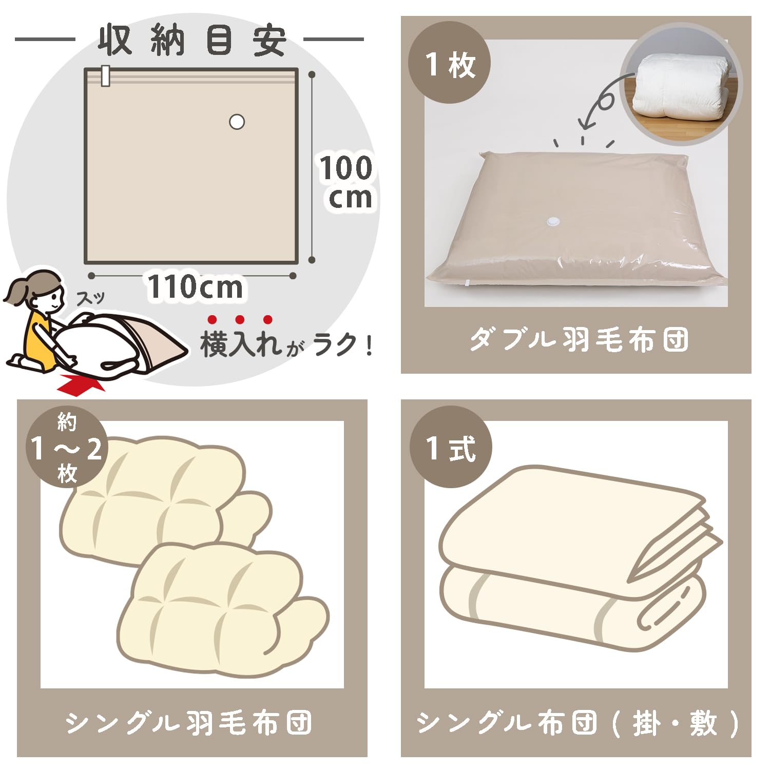 ●オフシーズンのかさばる羽毛布団や来客用の布団一式などをコンパクトに保管。