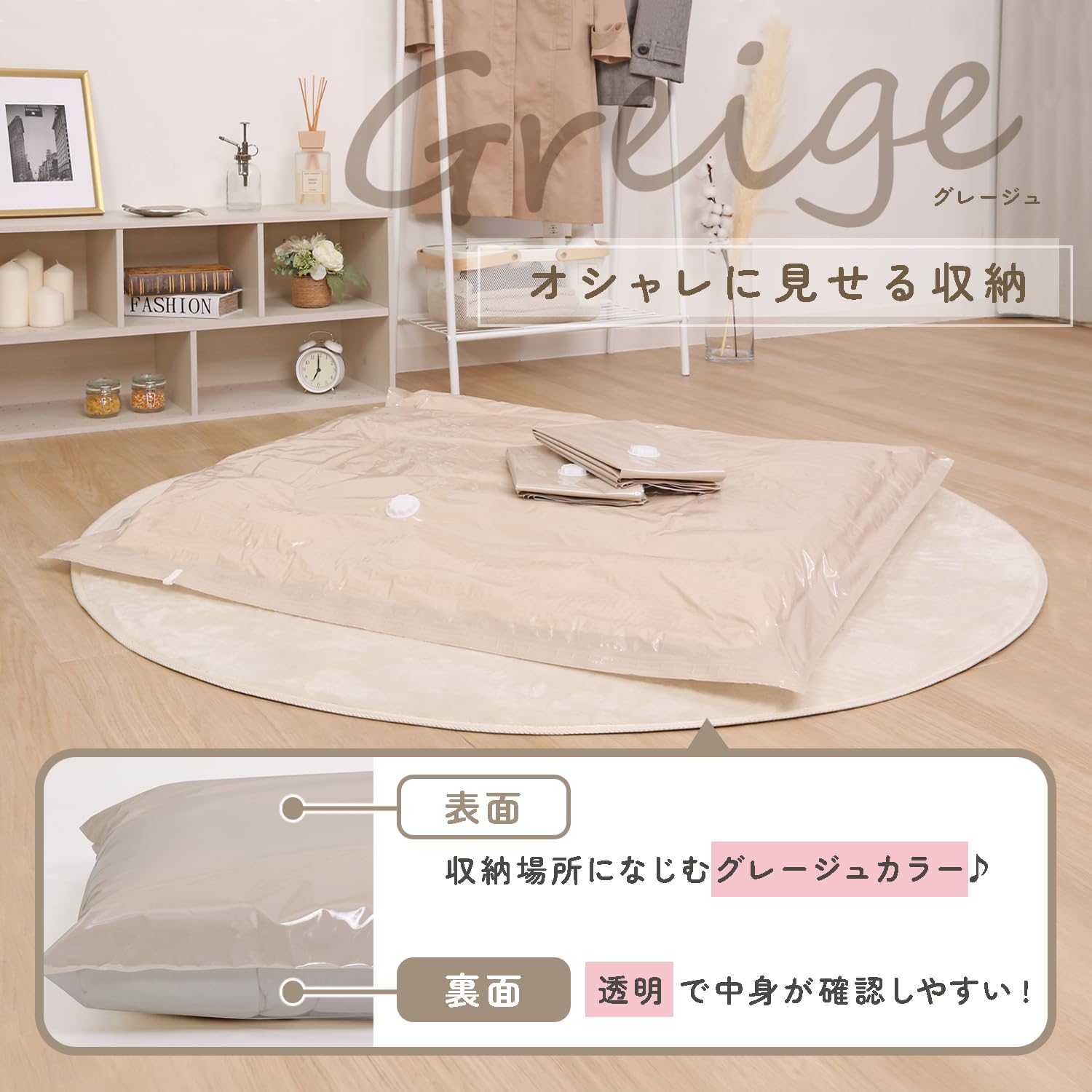 商品名:ふとん圧縮袋 3枚組 グレージュ