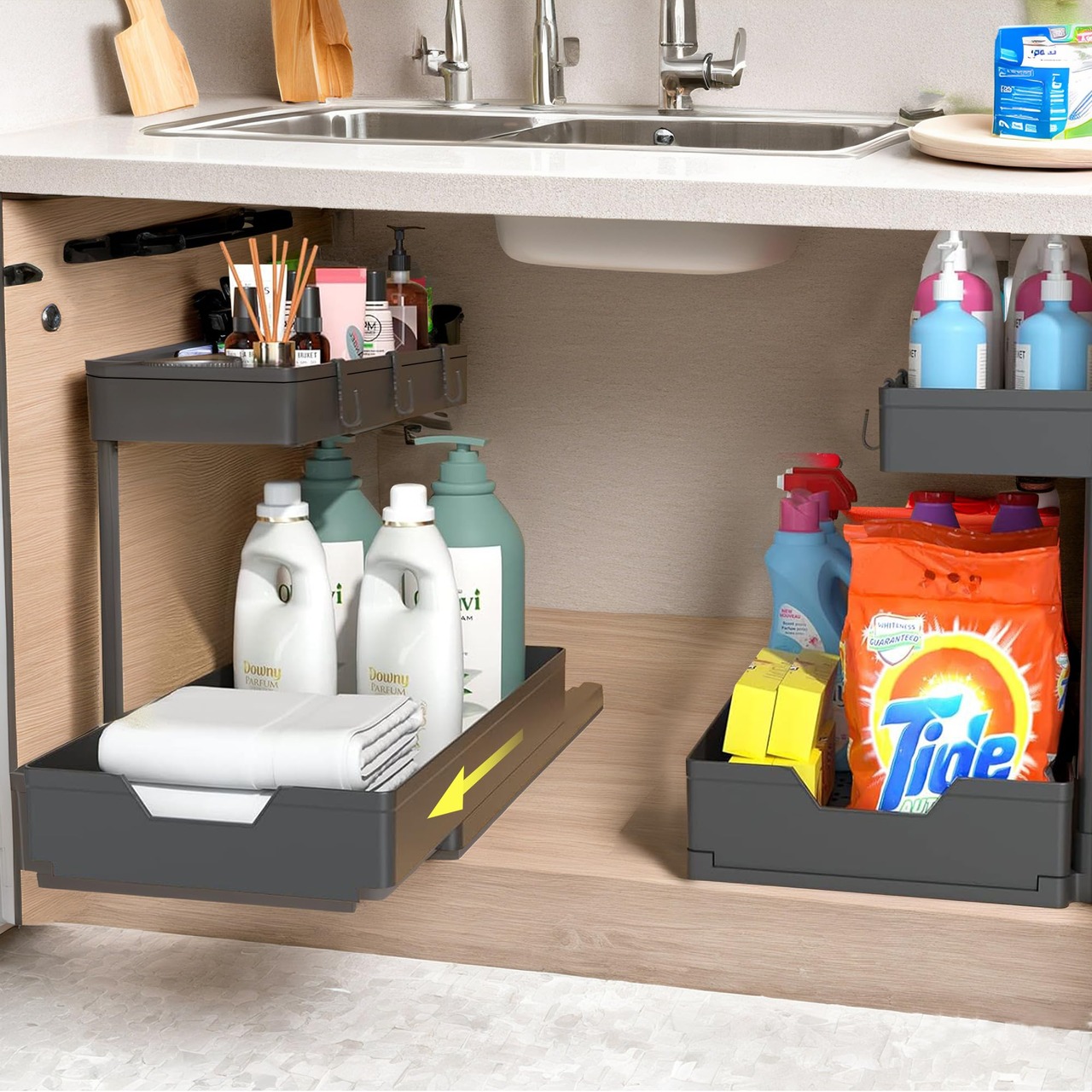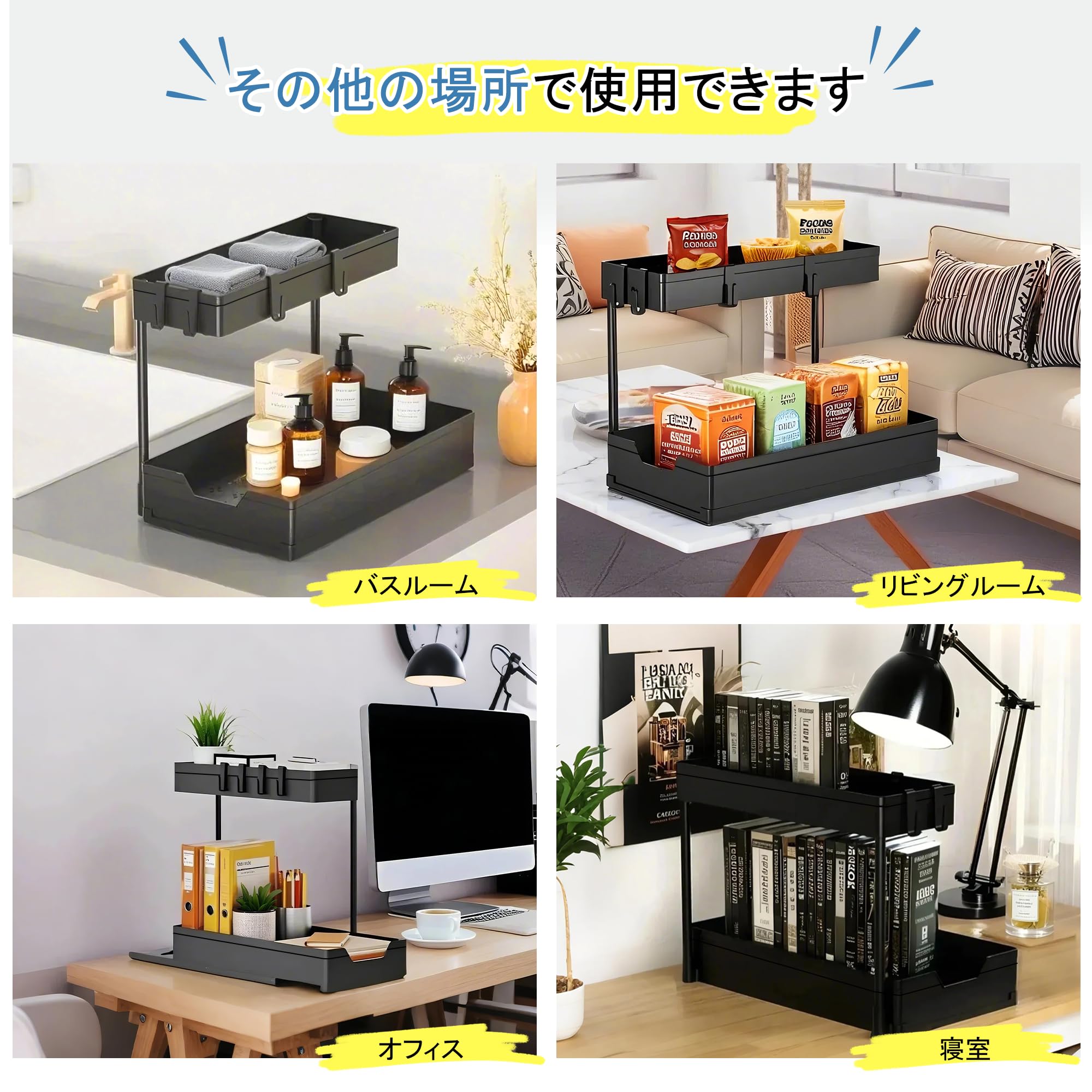 NATURE'S SOURCE【2個セット】シンク下収納ラック スライド2段引き出し式 キッチン収納ラック L字型隙間収納ケース 洗面台下 バスルーム収納用品 小物整理 台所 戸棚下 シンクした収納 省スペース 大容量 組立簡単 (ブラック)