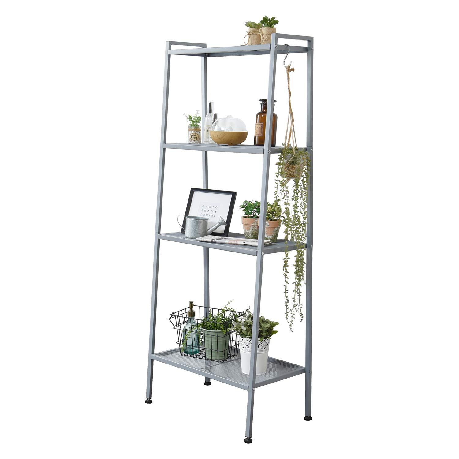 落ち着きのあるくすみカラー採用した、スチールオープンラック。美容品の収納棚から観葉植物のディスプレイまでこなします。