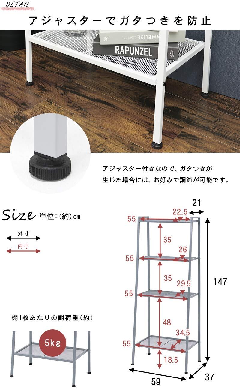 (約)幅59×奥行37×高さ147cm、棚板耐荷重:約5kg