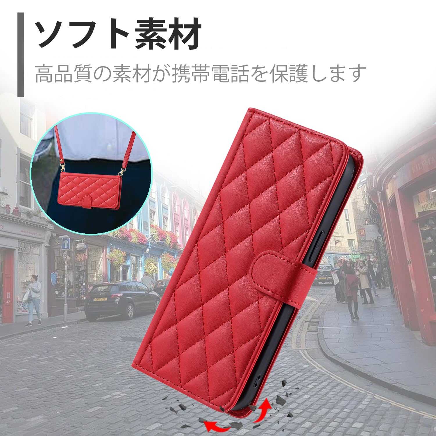 【在庫セール】laddutoi FOR pixel 7a ケース ピクセル7a ケース 手帳型 おしゃれ ストラップ付き スタンド機能 カード収納 軽量 薄型 耐衝撃 高級PUレザー 滑り防止 財布型 内蔵マグネット 開閉式 チェック柄 上質 耐摩擦 マグネット式 肩掛け 斜め掛けーレッド | nico3588