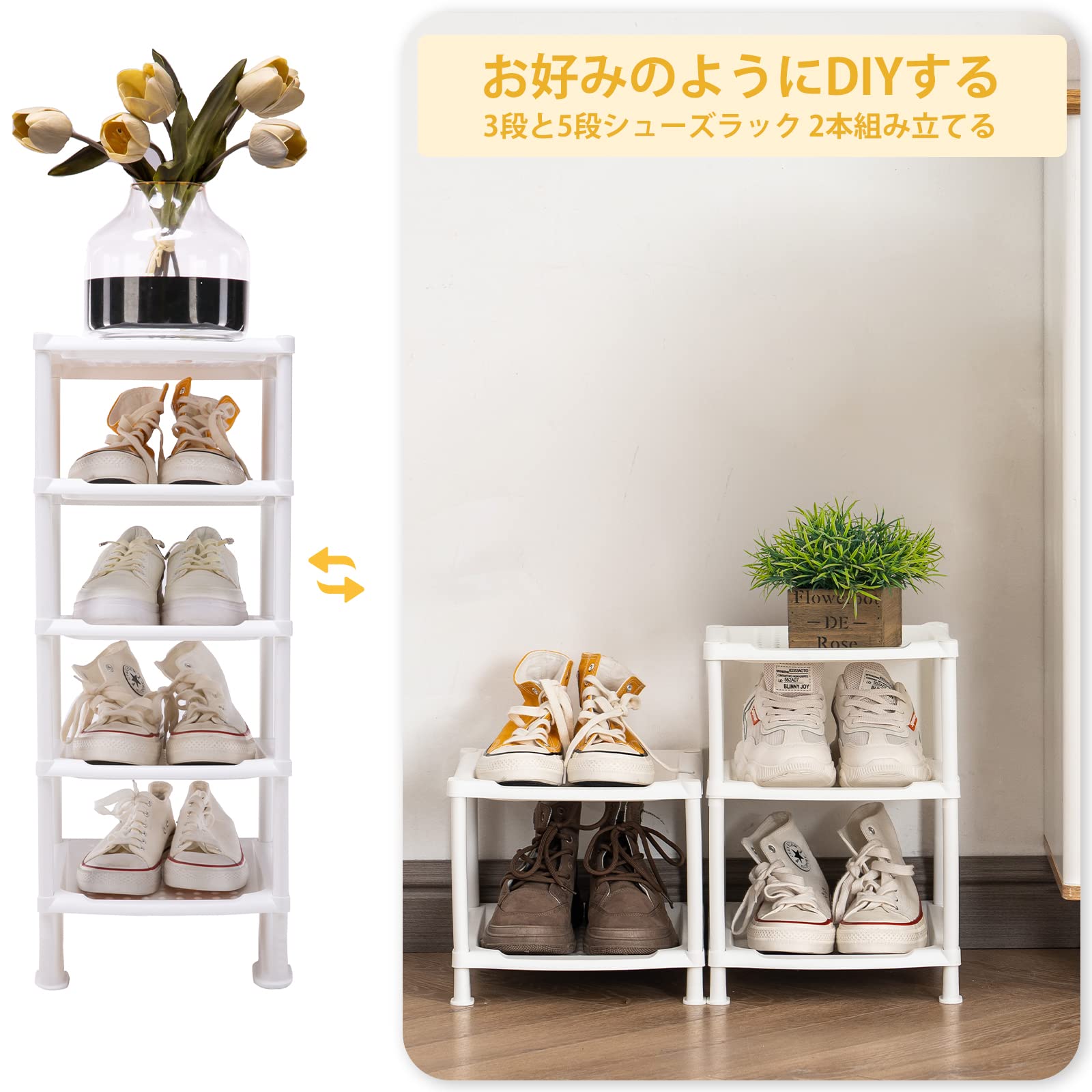 YOUDENOVA シューズラック スリム 靴収納 靴棚 省スペース 大容量 組み立て式 靴置き タワー コンパクト ポリプロピレン製 斜め置き 滑り止め トレー 狭い 玄関 廊下 クローゼット アパート用 靴箱 下駄箱 靴入れ(ホワイト・5段・26x33x66cm)