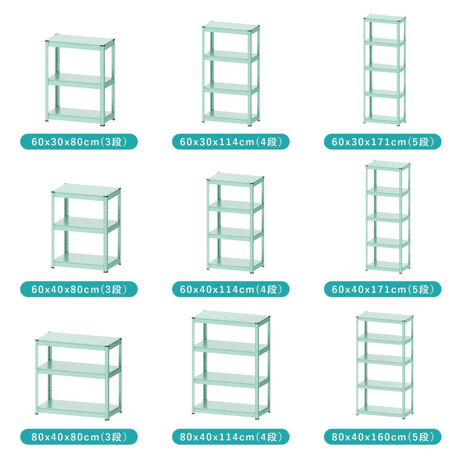 【特価セール】Umimileラック スチールラック 幅60cm 5段 耐荷重120kg/段 メタルラック (幅60×奥行40×高さ171cm ブルー)