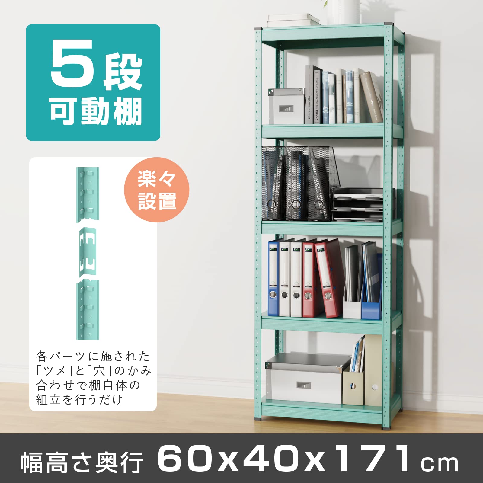 商品サイズ(cm):幅約60×奥行約40×高さ約171 付属棚板:5枚(段) 積載空間数:4