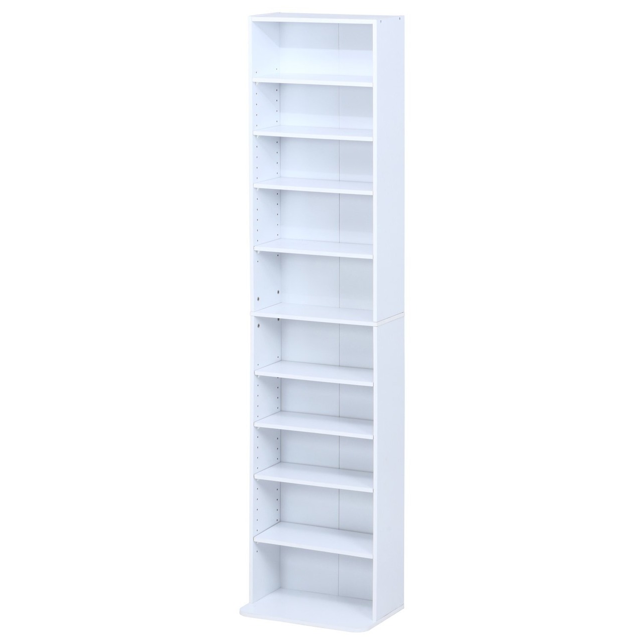 不二貿易 本棚 CD&DVDラック 10段 幅42×奥行19~28×高さ180cm ホワイト リビング収納 可動棚 棚板高さ調節可能 組立商品 97555