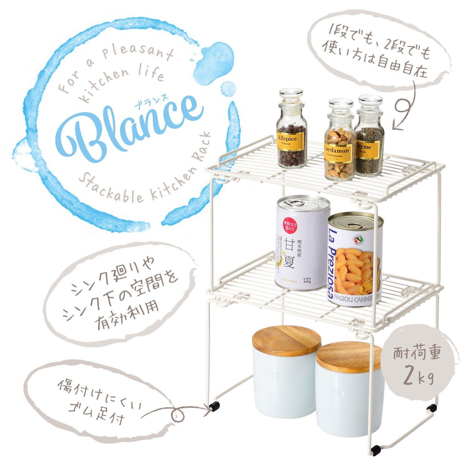 この棚は2kgまでの荷重に耐えます。過度な荷重をかけないでください。また、ゴム足で安定していますが、滑りやすい床では注意してください。
