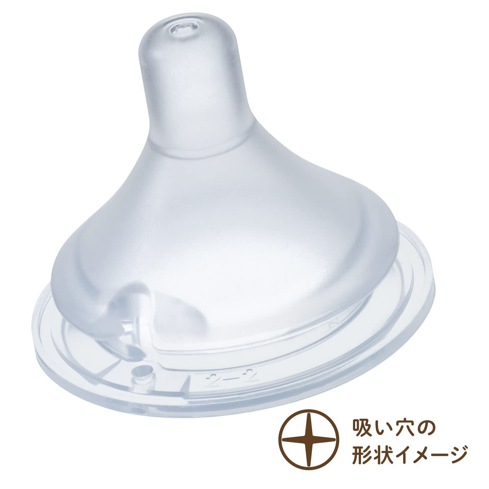 ゆっくり少しずつ飲める乳首です。飲んで口からミルクが溢れてしまう子や、飲むペースが早い子に。新生児から卒乳まで全月齢対応のマルチフィット乳首。ミルクが染み出て、吸う力によって出る量がコントロールされるマルチフィット乳孔です。シリコーンゴム製。日本製。